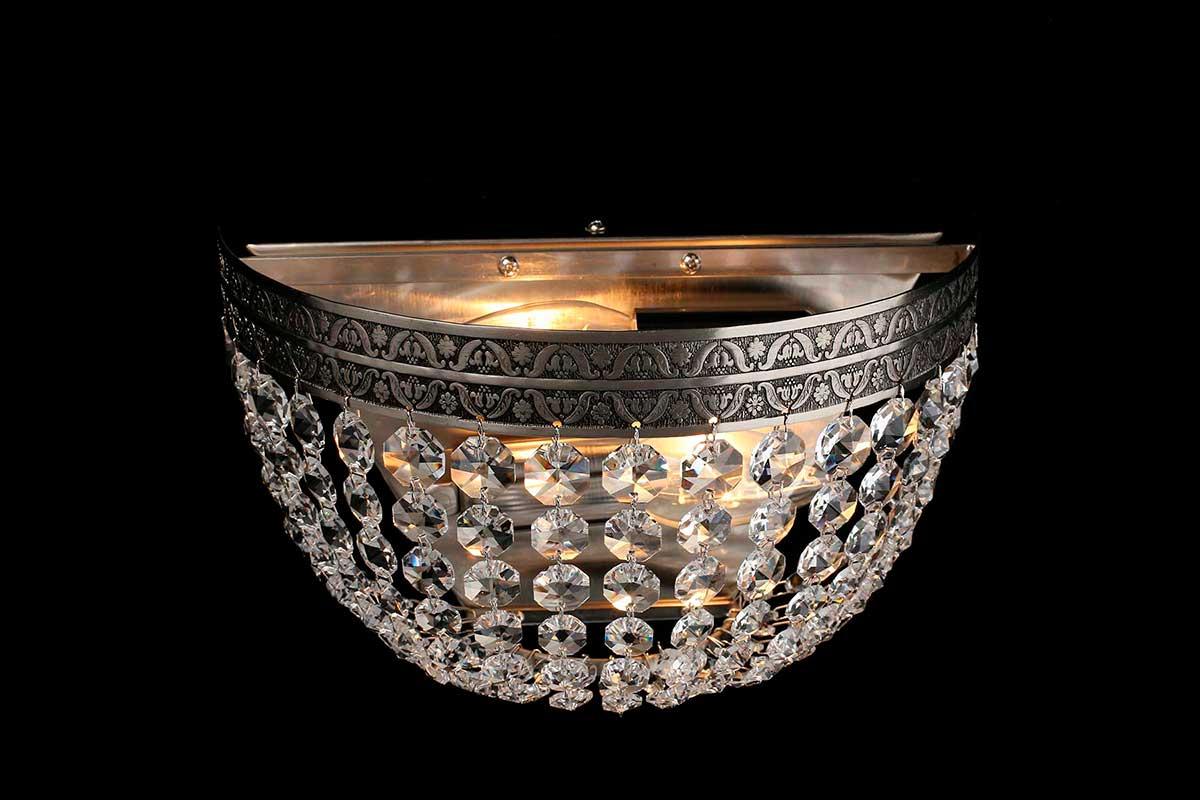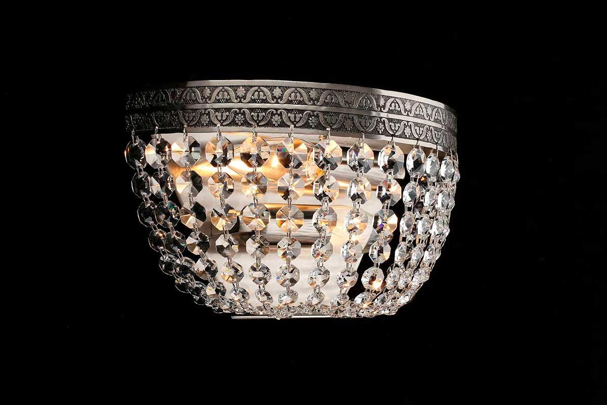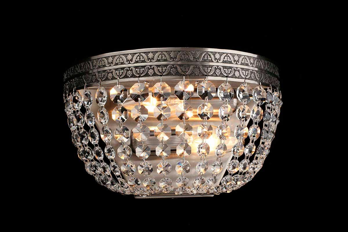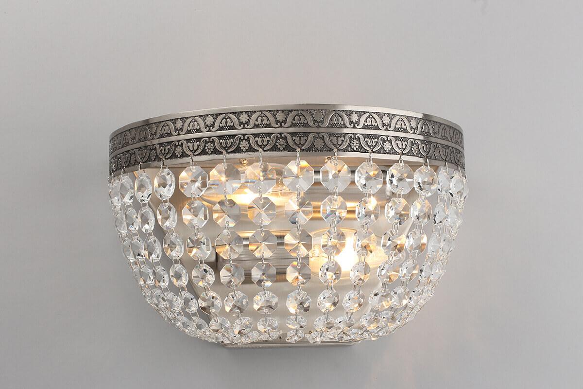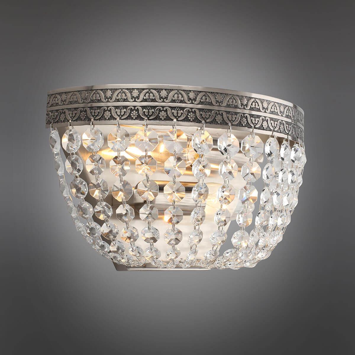 Бра Aployt Helcia APL.756.11.02 от Китайского бренда из коллекции Helcia предназначен для установки в спальни в классиком стиле. Бра с металлической арматурой цвета никель и прозрачного цвета плафонами из хрусталя, формы предназначен для освещения м2.