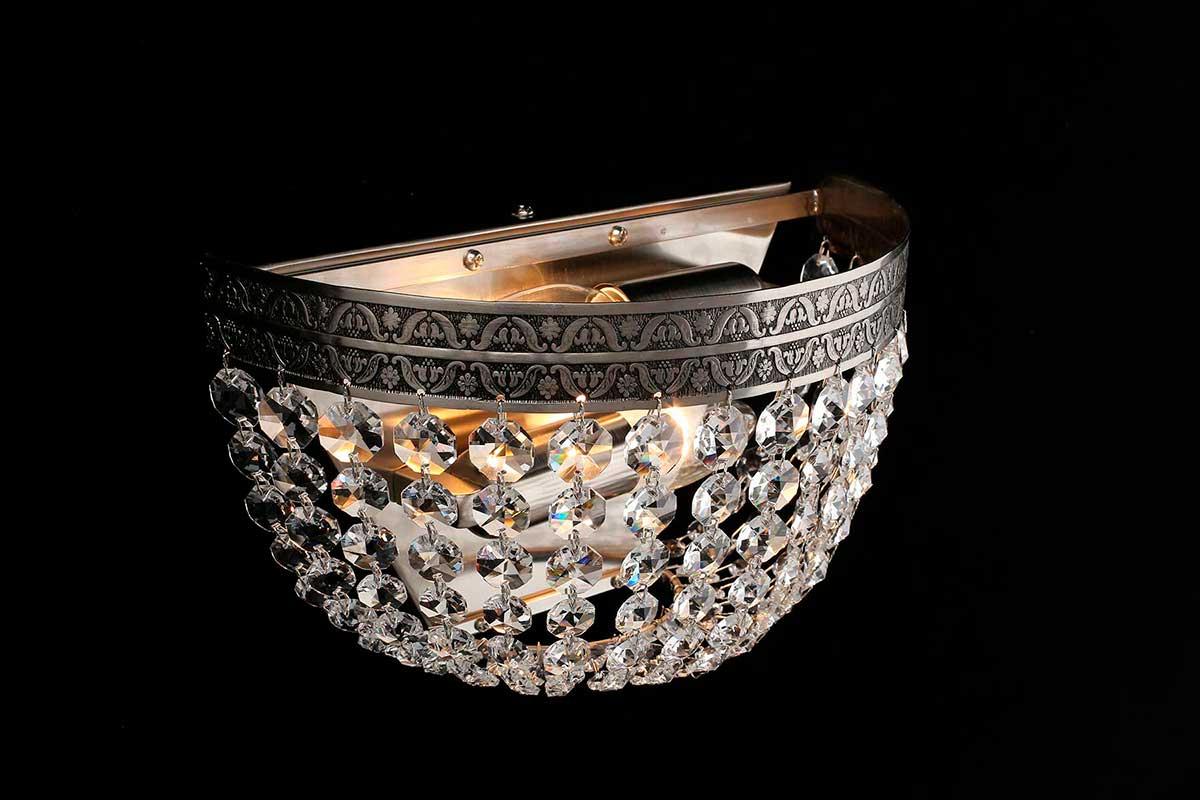 Для БРА необходима 2 лампы накаливания 40 W и цоколем E14. Габариты изделия: высота – 150 мм, диаметр – мм.
