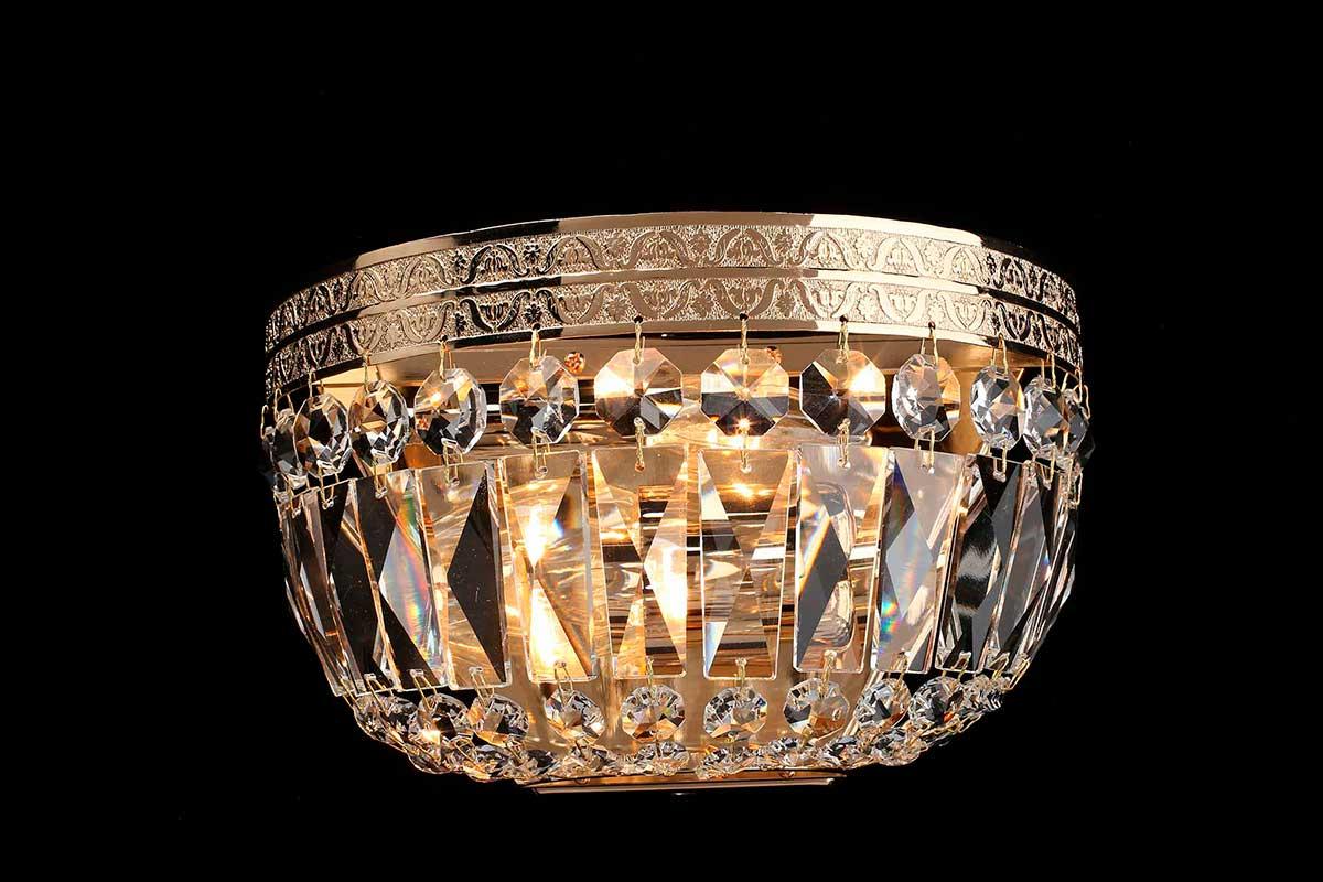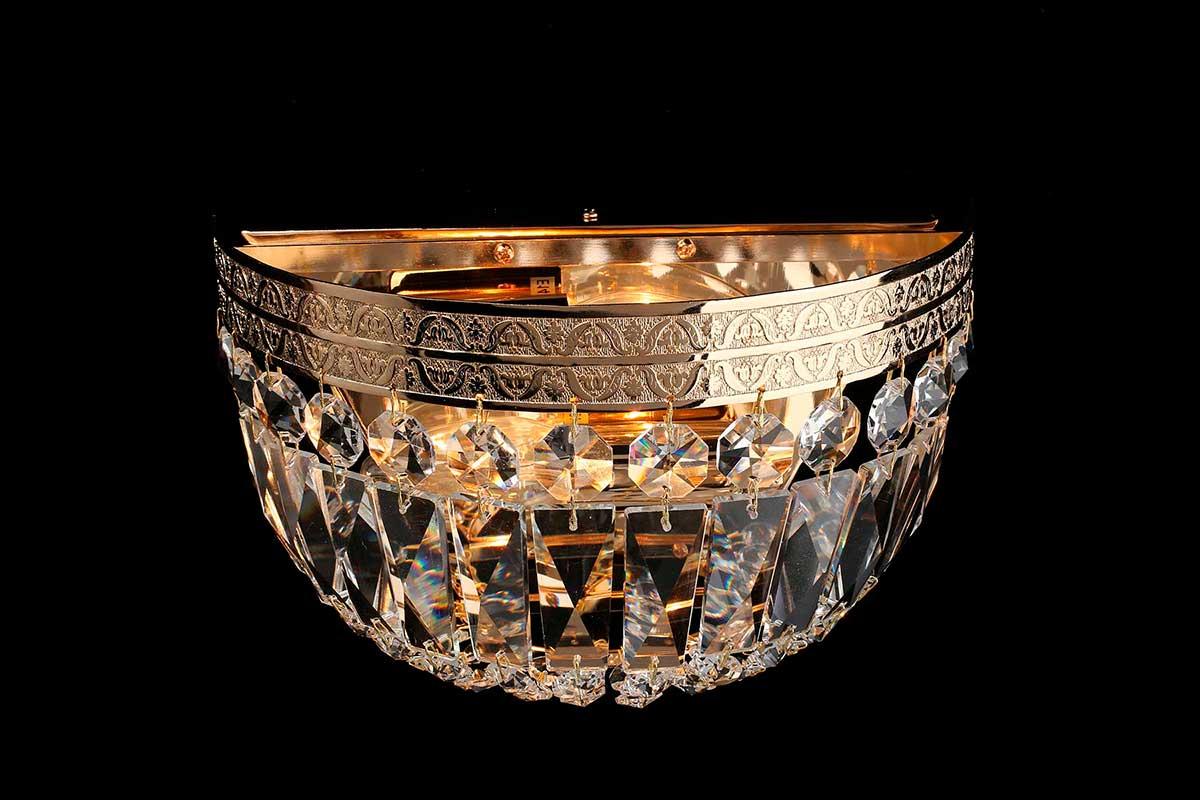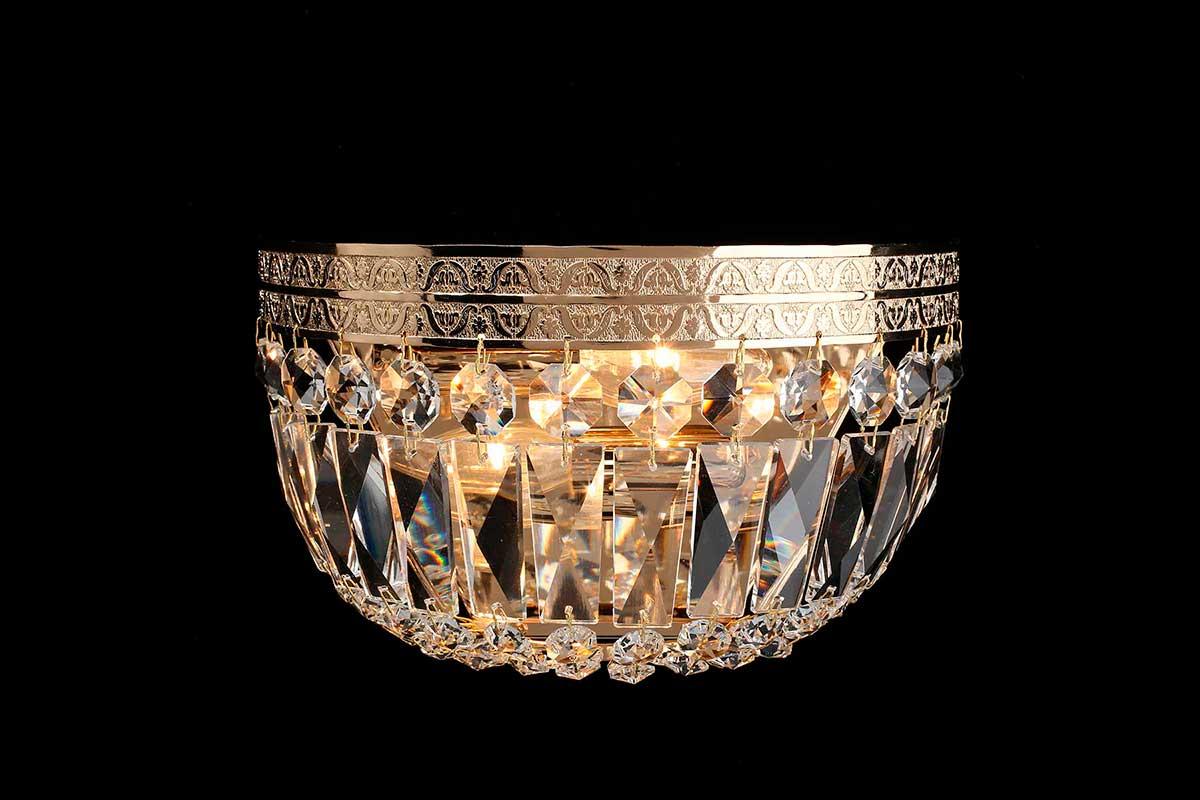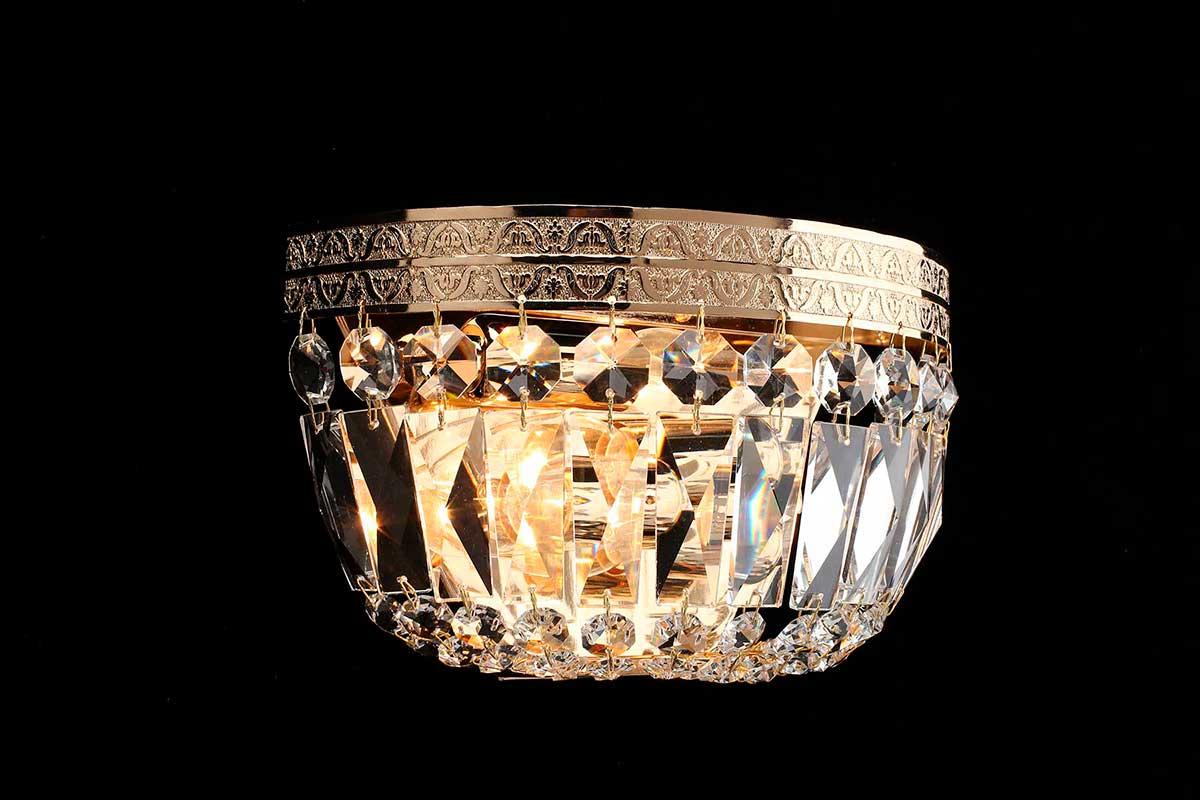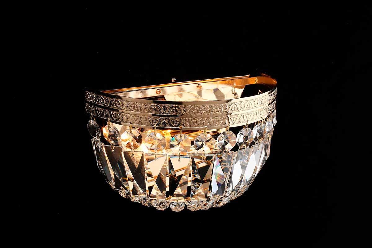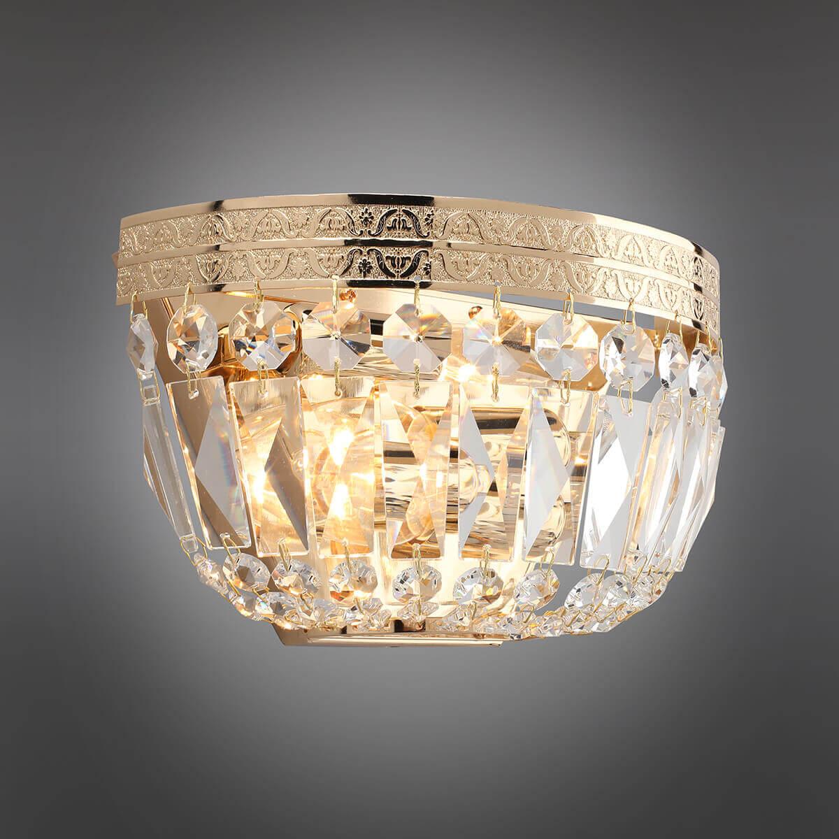 Бра Aployt Lidi APL.757.01.02 от Китайского бренда из коллекции Lidi предназначен для установки в спальни в классиком стиле. Бра с металлической арматурой залотого цвета и прозрачного цвета плафонами из хрусталя, формы предназначен для освещения м2.