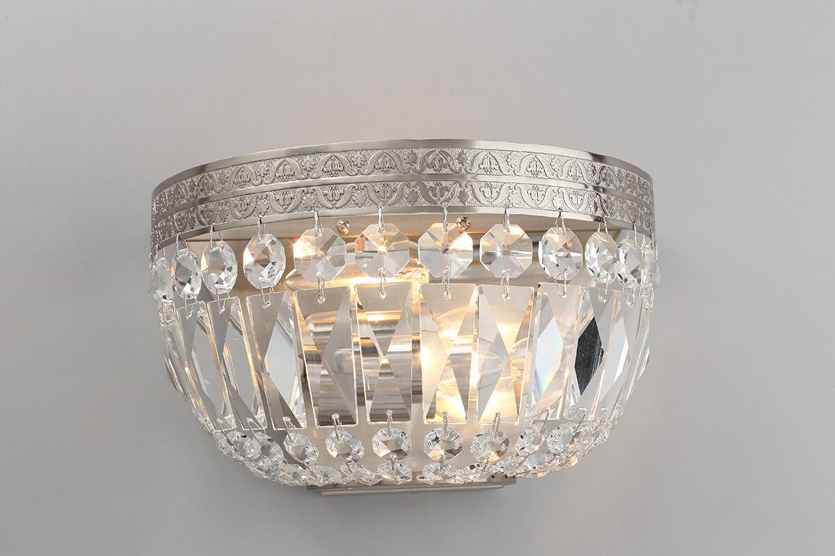 Бра Aployt Lidi APL.757.11.02 от Китайского бренда из коллекции Lidi предназначен для установки в спальни в классиком стиле. Бра с металлической арматурой цвета никель и прозрачного цвета плафонами из хрусталя, формы предназначен для освещения м2.