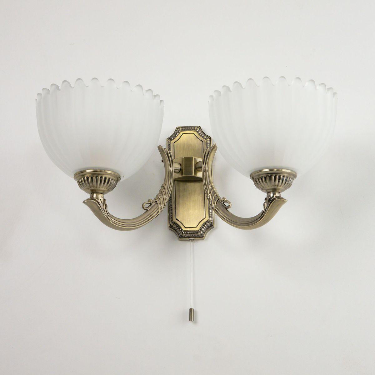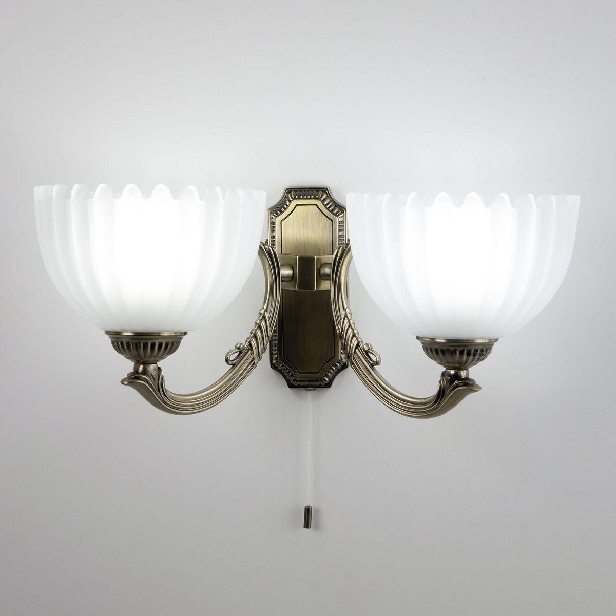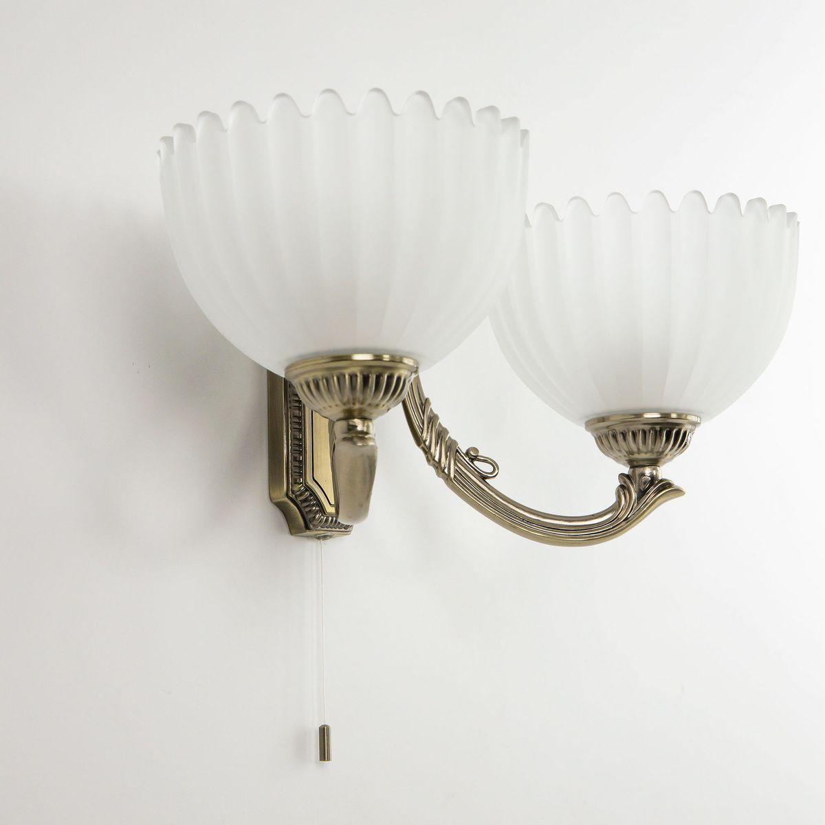 Бра Citilux Севилья CL414323 от Китайского бренда из коллекции Севилья предназначен для установки в гостиной в классиком стиле. Бра с металлической арматурой бронзового цвета и белого цвета плафонами из стекла, формы предназначен для освещения 6 м2.