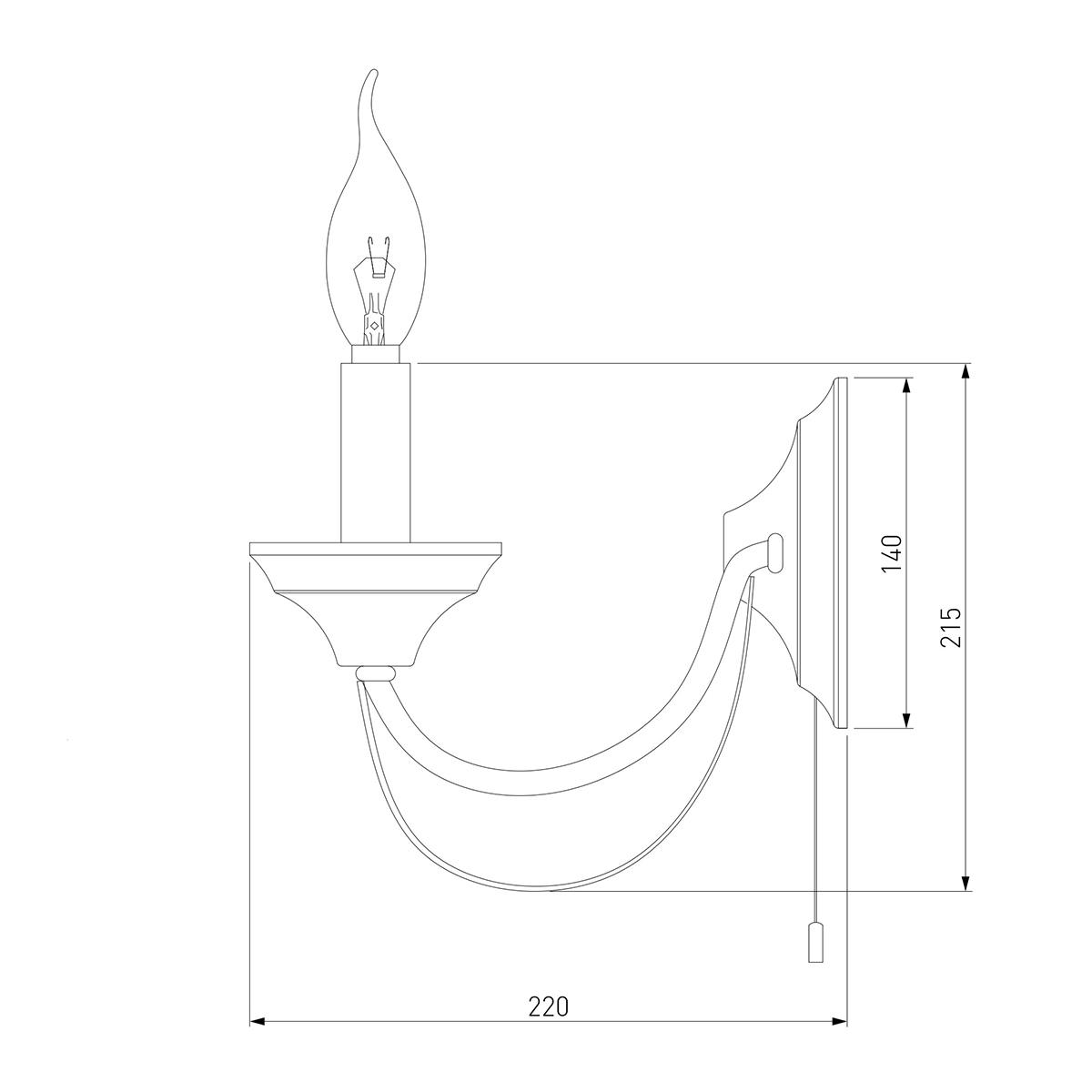 Для БРА необходима 2 лампы накаливания 60 W и цоколем E14. Габариты изделия: высота – 240 мм, диаметр – мм.