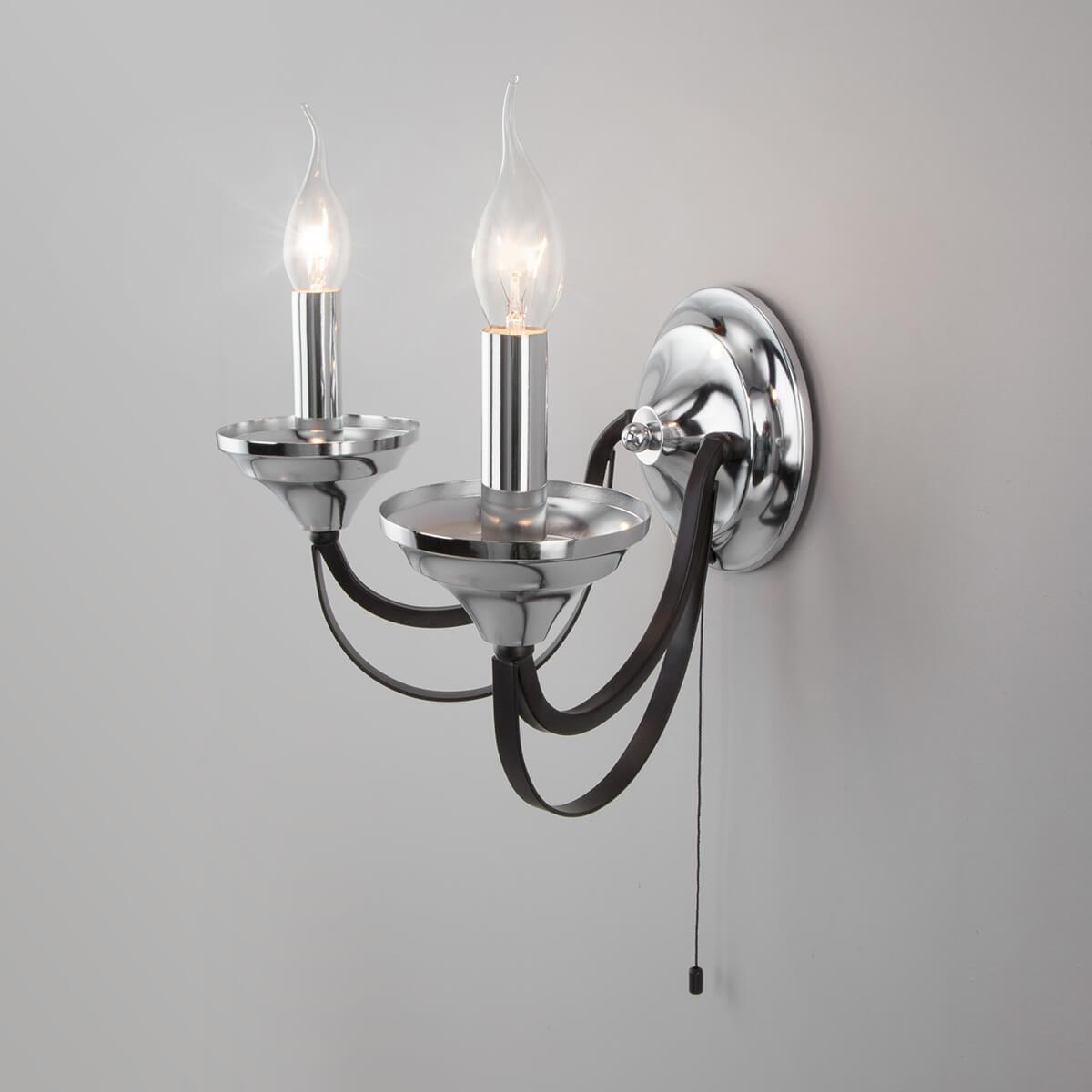 Бра Eurosvet Lazzaro 60098/2 хром от Китайского бренда из коллекции Lazzaro предназначен для установки в гостиной в классиком стиле. Бра с металлической арматурой цвет хрома и плафонами из , формы предназначен для освещения м2.