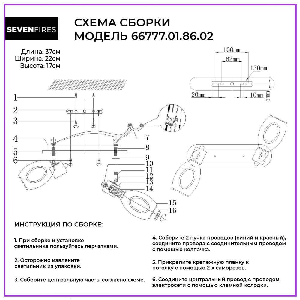 Спот Seven Fires Dzhorann 66777.01.86.02 от Китайского бренда из коллекции Dzhorann предназначен для установки в спальни в стиле модерн. Бра с металлической арматурой черного цвета и цвета шампунт плафонами из стекла, формы предназначен для освещения 6 м2.