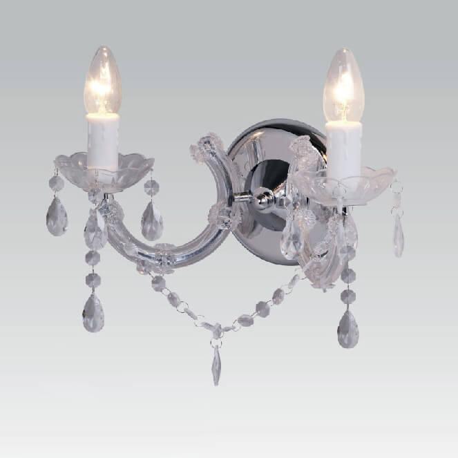 Для БРА необходима 2 лампы накаливания 40 W и цоколем E14. Габариты изделия: высота – 220 мм, диаметр – мм.