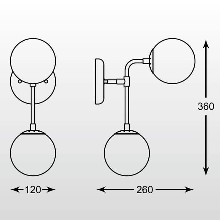 Для БРА необходима 2 галогеновые лампы 42 W и цоколем G9. Габариты изделия: высота – 360 мм, диаметр – мм.