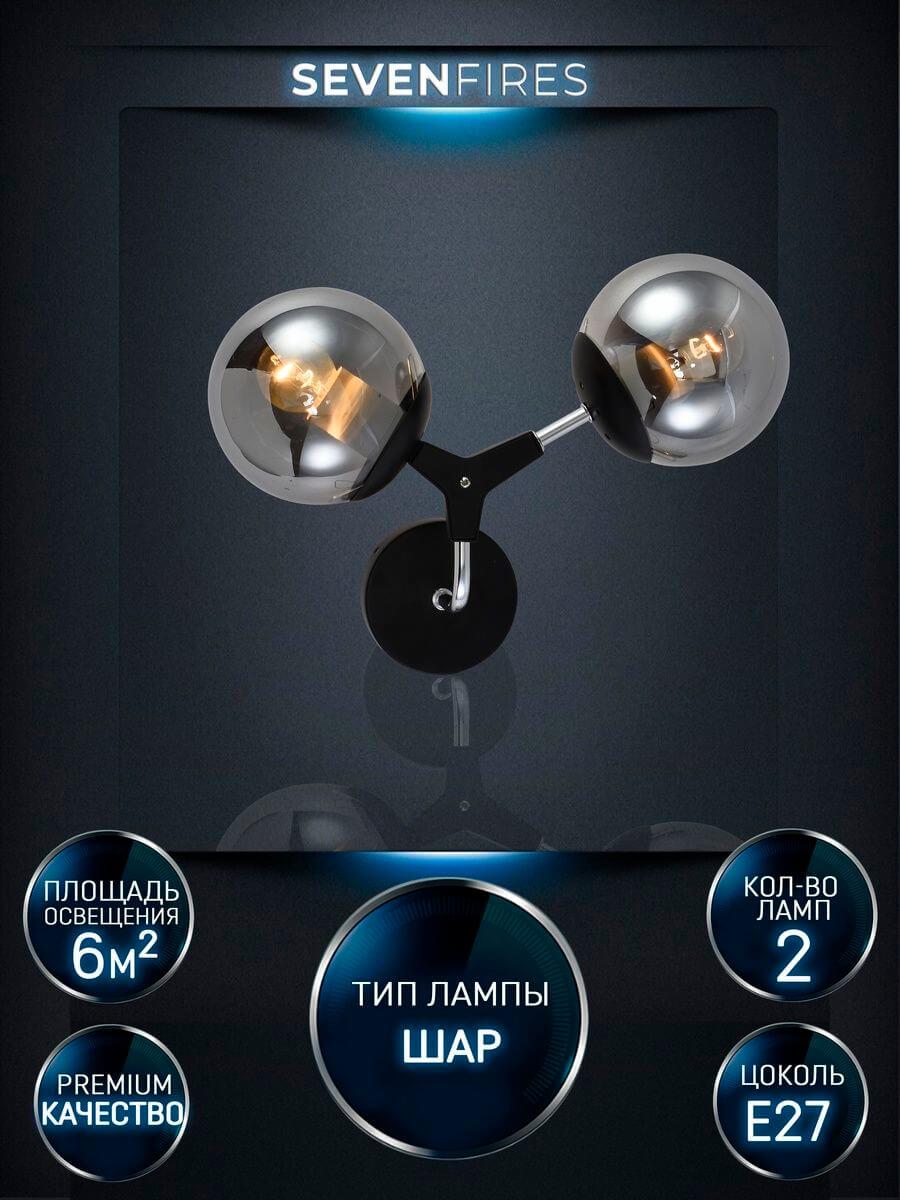Бра Seven Fires Grozotto SF3311/2W-MBK-CR от Российского бренда из коллекции Grozotto предназначен для установки в гостиной в стиле модерн. Бра с металлической арматурой цвет хрома и дымчатого цвета плафонами из стекла, формы предназначен для освещения 6 м2.