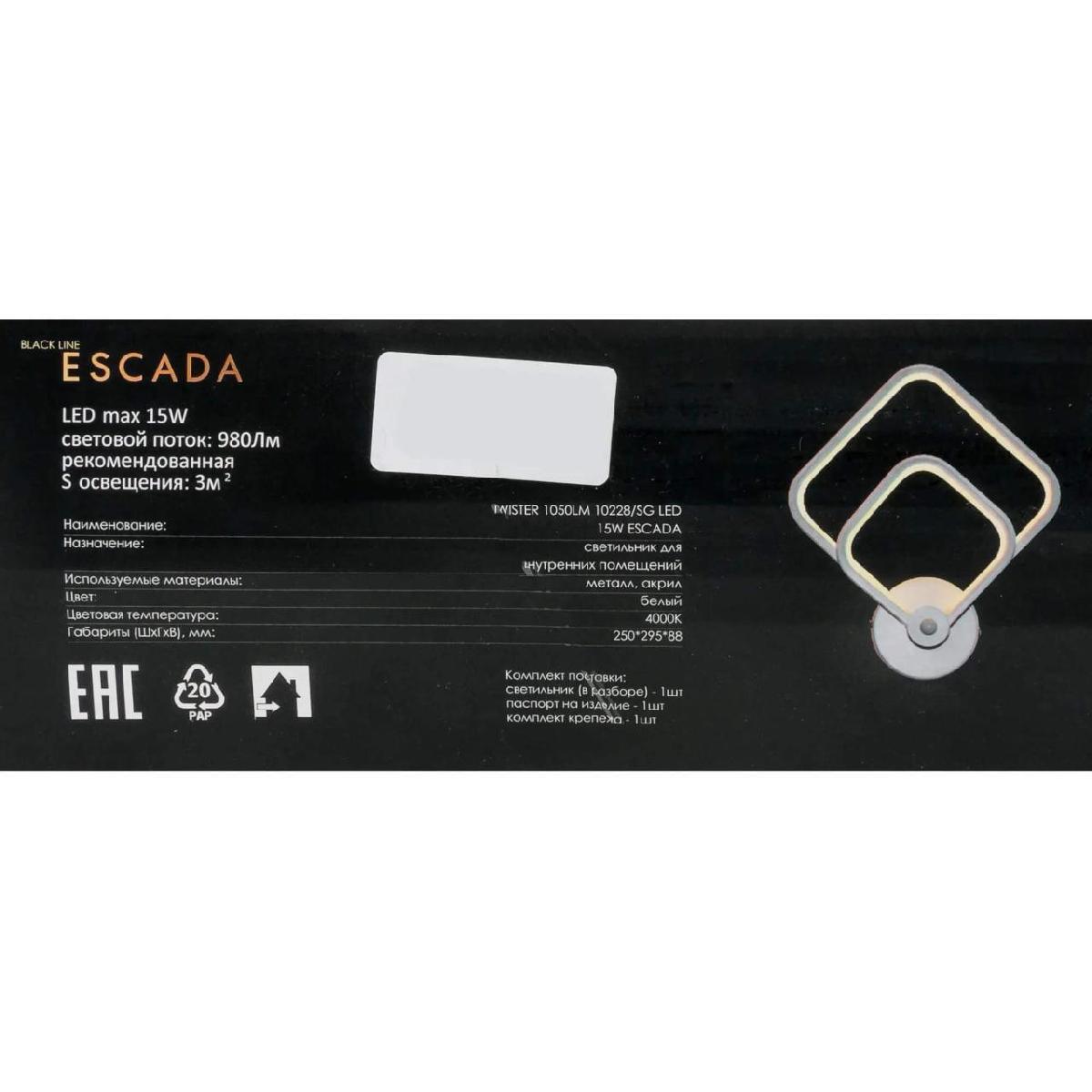 Бра Escada Twister 10228/SG Led от Китайского бренда из коллекции Twister предназначен для установки в прихожей в современном стиле. Бра с металлической арматурой белого цвета и белого цвета плафонами из металла, формы предназначен для освещения 3 м2.