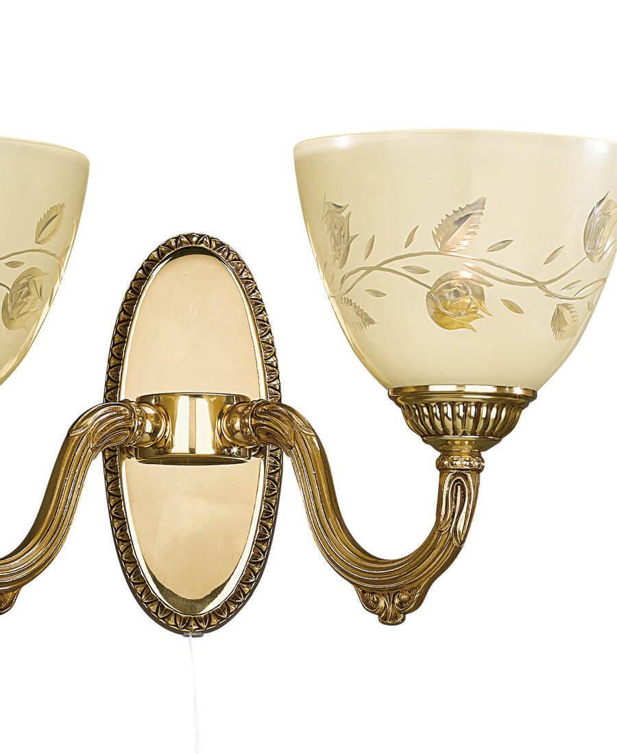 Бра Reccagni Angelo A 6358/2 от Итальянского бренда из коллекции verde 6358 предназначен для установки в гостиной в классиком стиле. Бра с латунной арматурой и светло-желтого цвета плафонами из стекла, формы предназначен для освещения 3 м2.