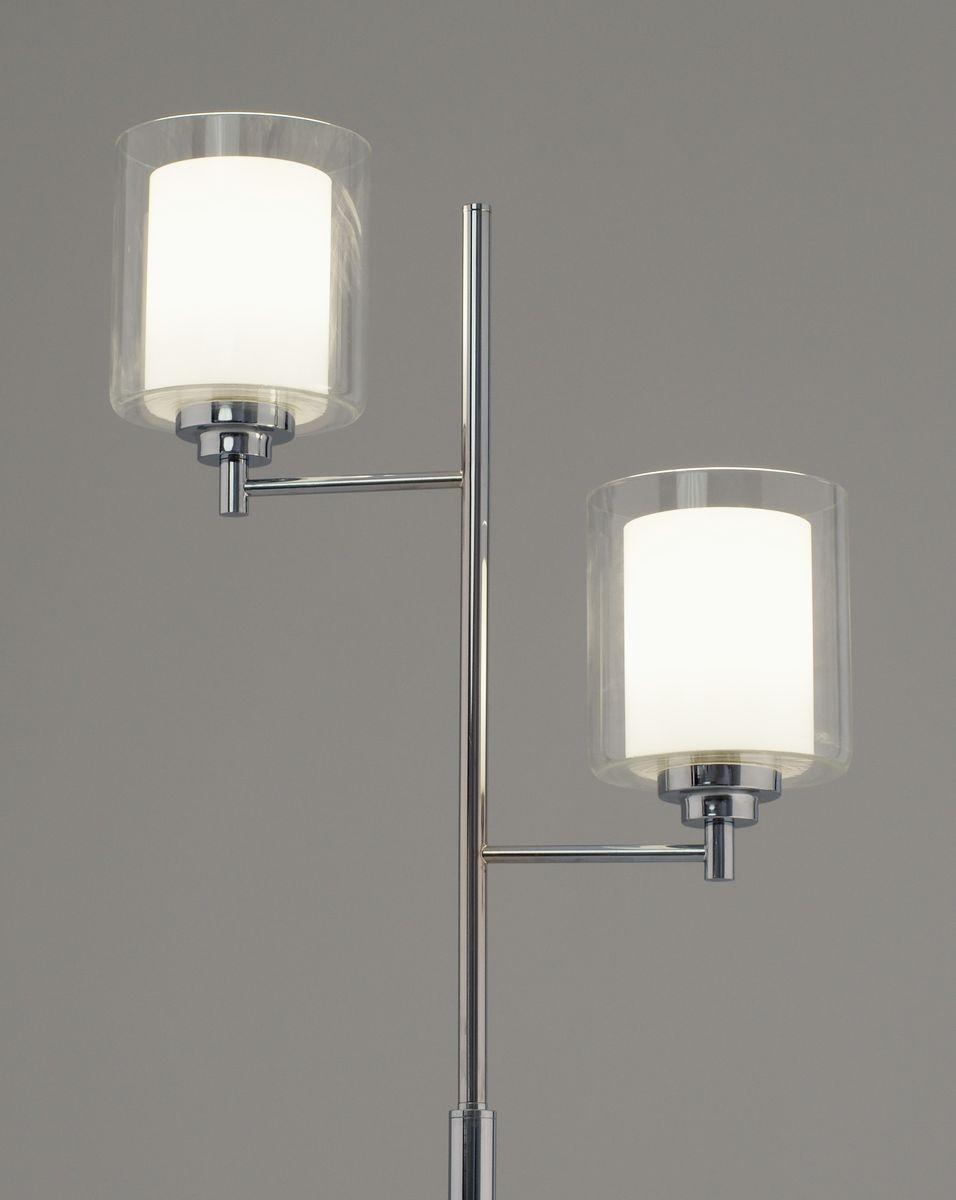 Торшер Moderli Maximilian V11131-2F от Китайского бренда из коллекции Maximilian предназначен для установки в стиле модерн. Бра с металлической арматурой цвет хрома и плафонами из стекла, формы предназначен для освещения 6 м2.
