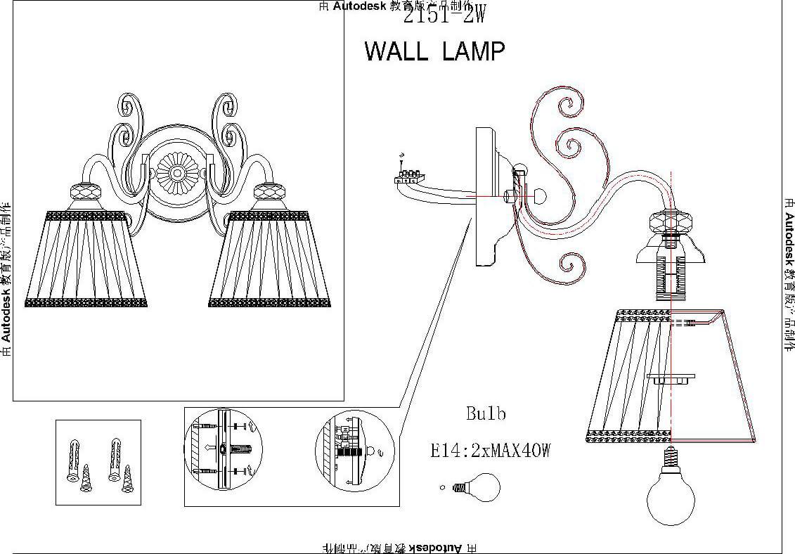 Для БРА необходима 2 лампы накаливания 40 W и цоколем E14. Габариты изделия: высота – 240 мм, диаметр – мм.