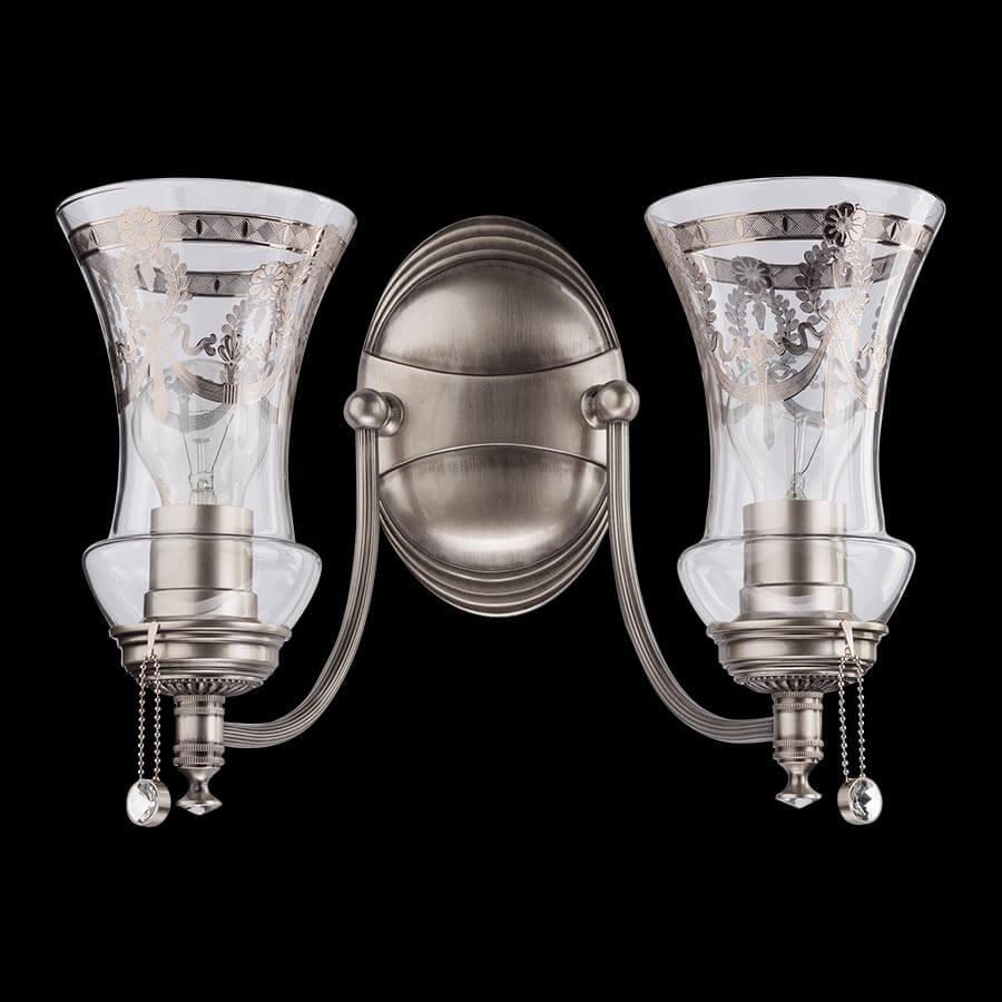 Бра Kutek Nico NIC-K-2 (N) от Польского бренда Kutek из коллекции Nico предназначен для установки в гостиной в классиком стиле. Бра с латунной арматурой цвета никель и прозрачного цвета плафонами из стекла, формы Флористика предназначен для освещения м2.