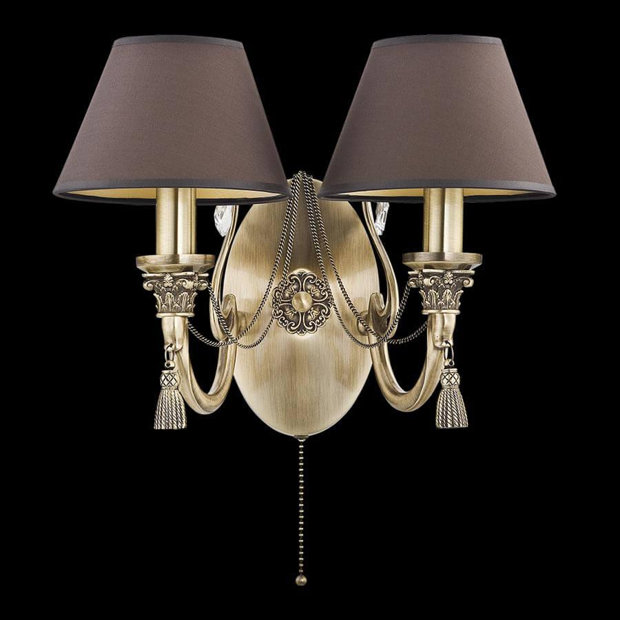 Бра Kutek Roma Abazur ROM-K-2 (P/A) от Польского бренда Kutek из коллекции Roma Abazur предназначен для установки в гостиной в классиком стиле. Бра с латунной арматурой бронзового цвета и плафонами из ткани, формы предназначен для освещения м2.