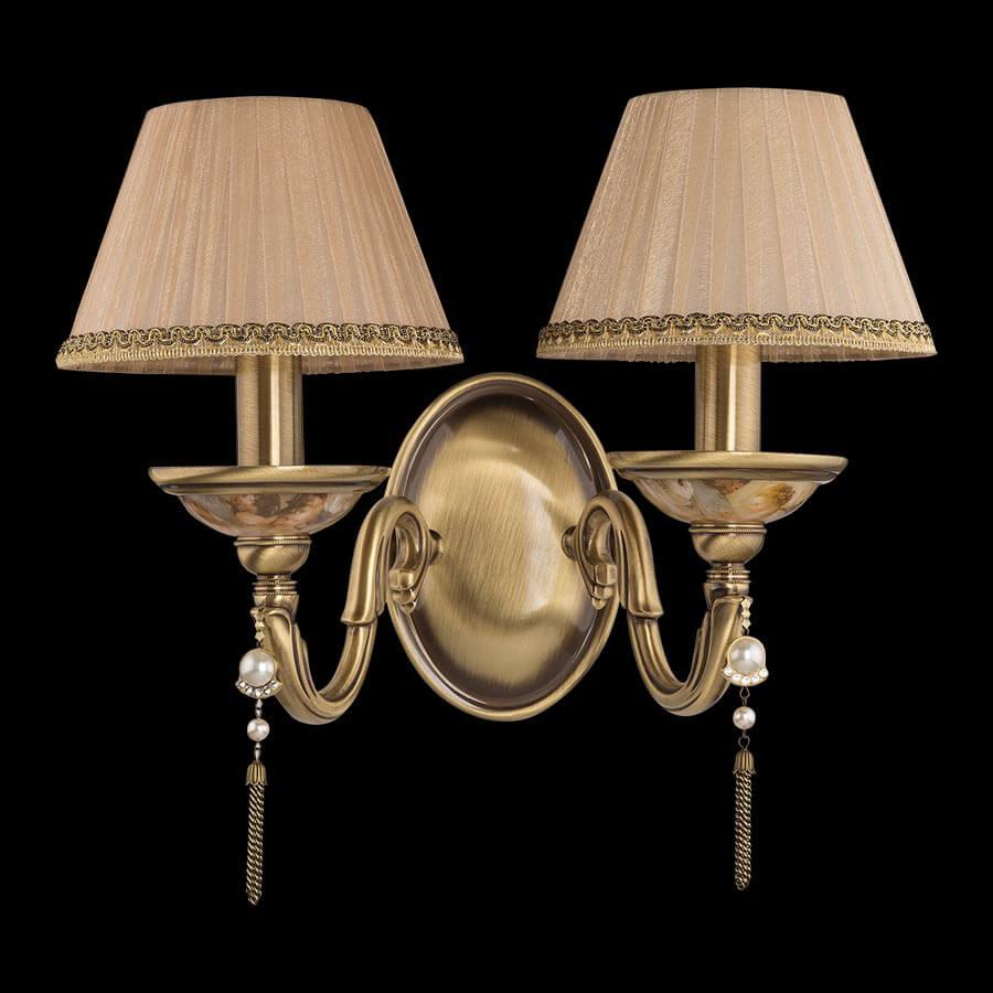 Бра Kutek Torino TOR-K-2 (P/A )A от Польского бренда Kutek из коллекции Torino предназначен для установки в гостиной в классиком стиле. Бра с латунной арматурой бронзового цвета и плафонами из ткани, формы предназначен для освещения м2.