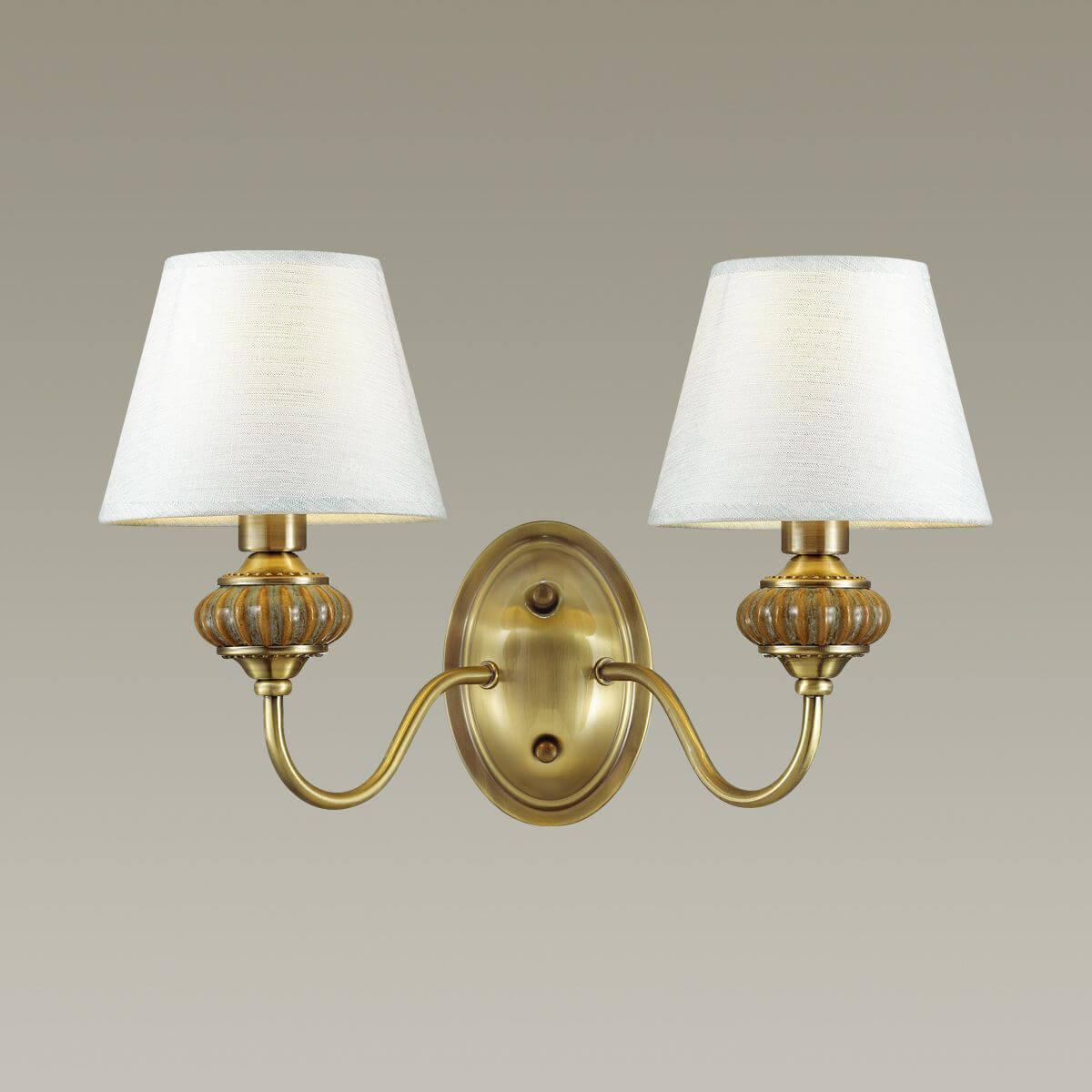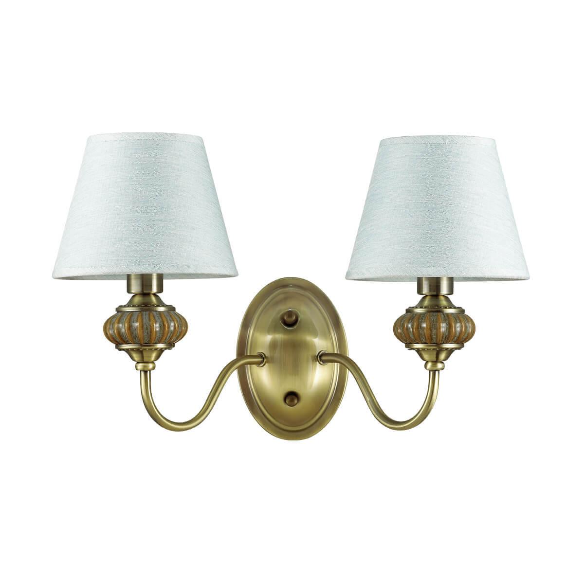 Бра Lumion Matilda 4430/2W от Итальянского бренда Lumion из коллекции Classi предназначен для установки в спальни в неоклассическом стиле. Бра с металлической арматурой бронзового цвета и голобого цвета плафонами из ткани, формы конуса предназначен для освещения м2.