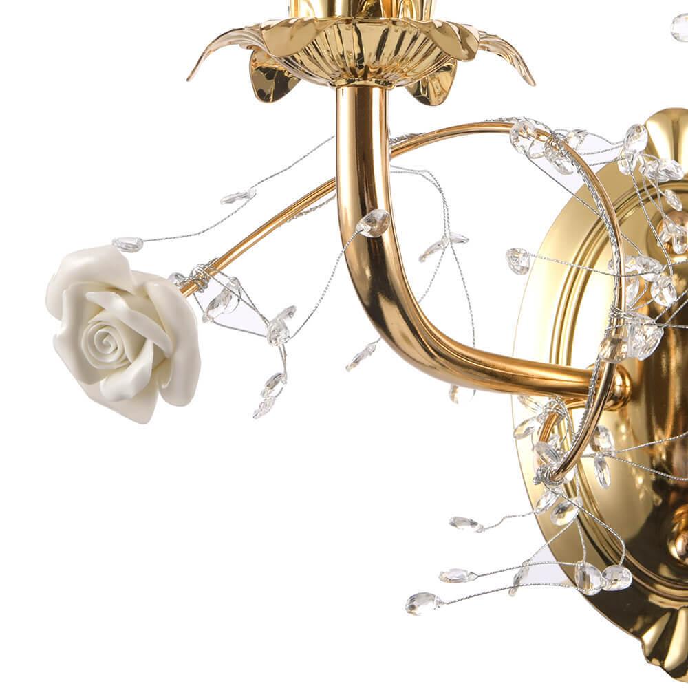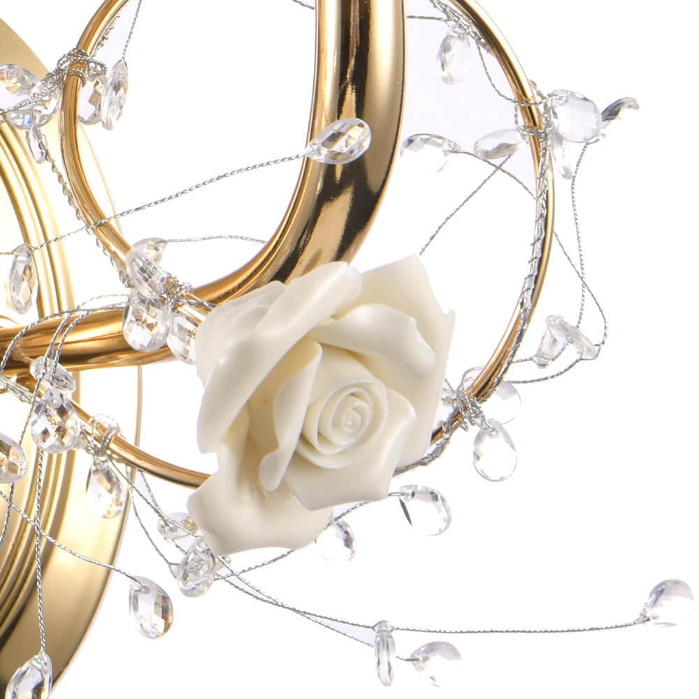 Бра Seven Fires Эйдин 77302.02.01.02 от Российского бренда Seven Fires из коллекции Эйдин предназначен для установки в спальни в стиле флористика. Бра с металлической арматурой залотого цвета и плафонами из , формы предназначен для освещения 6 м2.