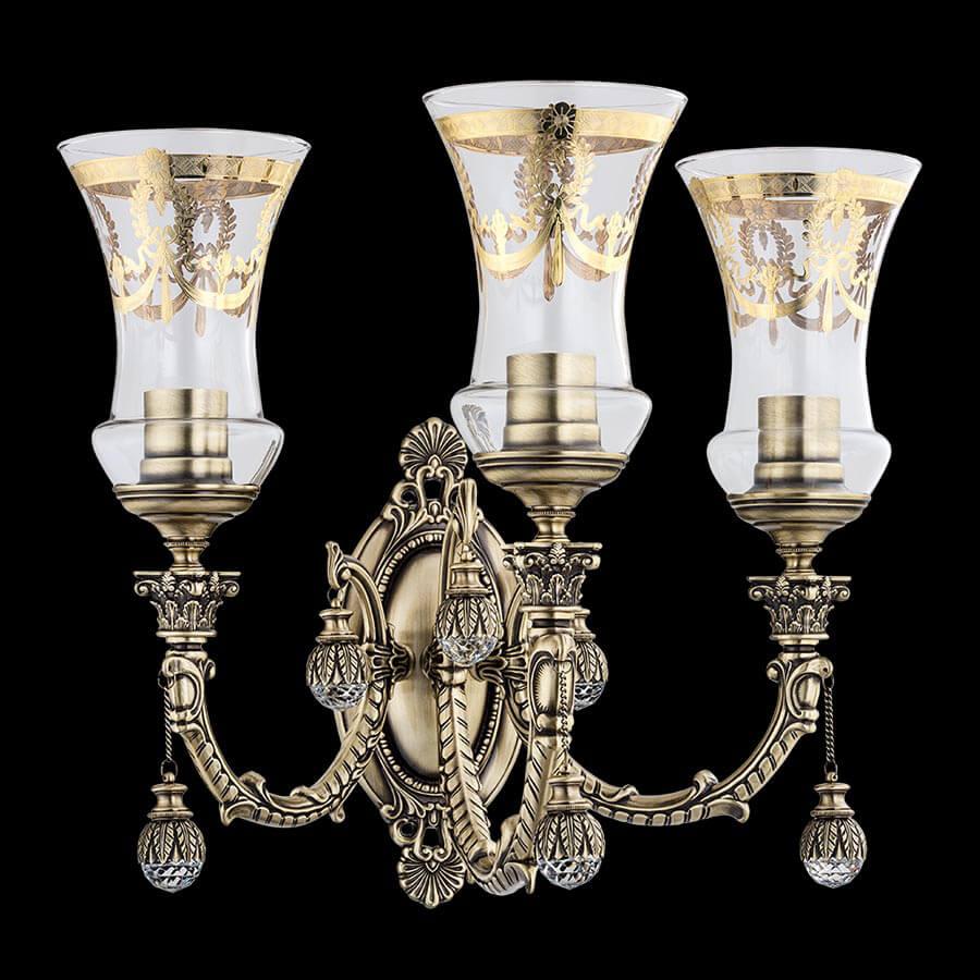 Для БРА необходима 3 лампы накаливания 60 W и цоколем E27. Габариты изделия: высота – 370 мм, диаметр – мм.