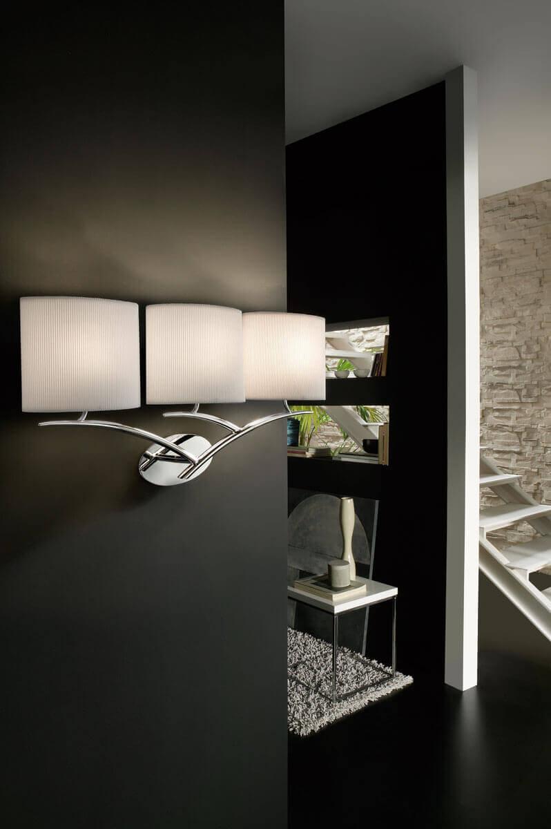 Бра Mantra Eve 1136 от Китайского бренда из коллекции Eve предназначен для установки в больших залах в дизайнерском стиле. Бра с металлической арматурой цвет хрома и белого цвета плафонами из ткани, формы предназначен для освещения м2.