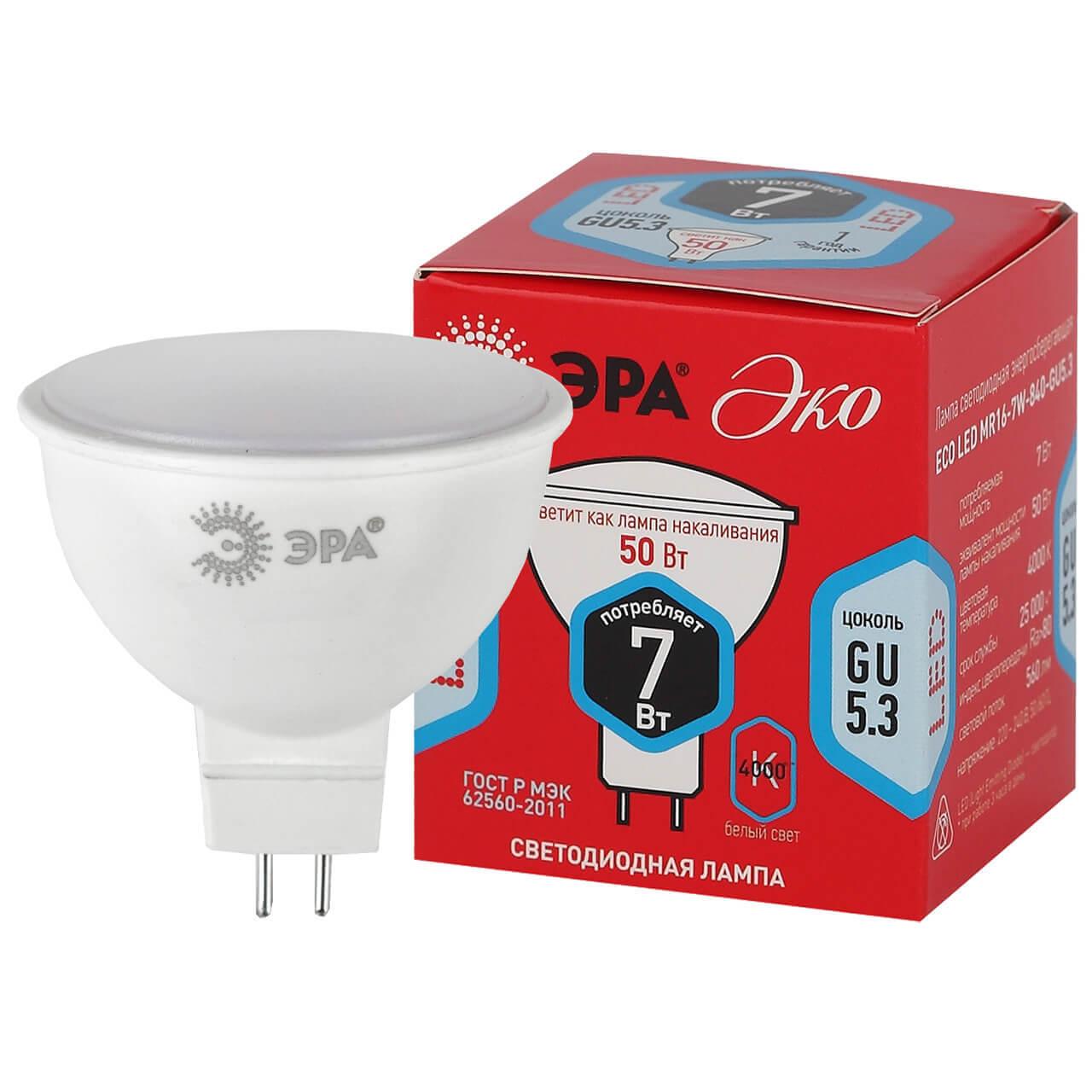 Лампа светодиодная ЭРА GU5.3 7W 4000K матовая MR16-7W-840-GU5.3 Б0047736 отРоссийского бренда ЭРА с цоколем GU5.3 и имеет форму - Грибок .