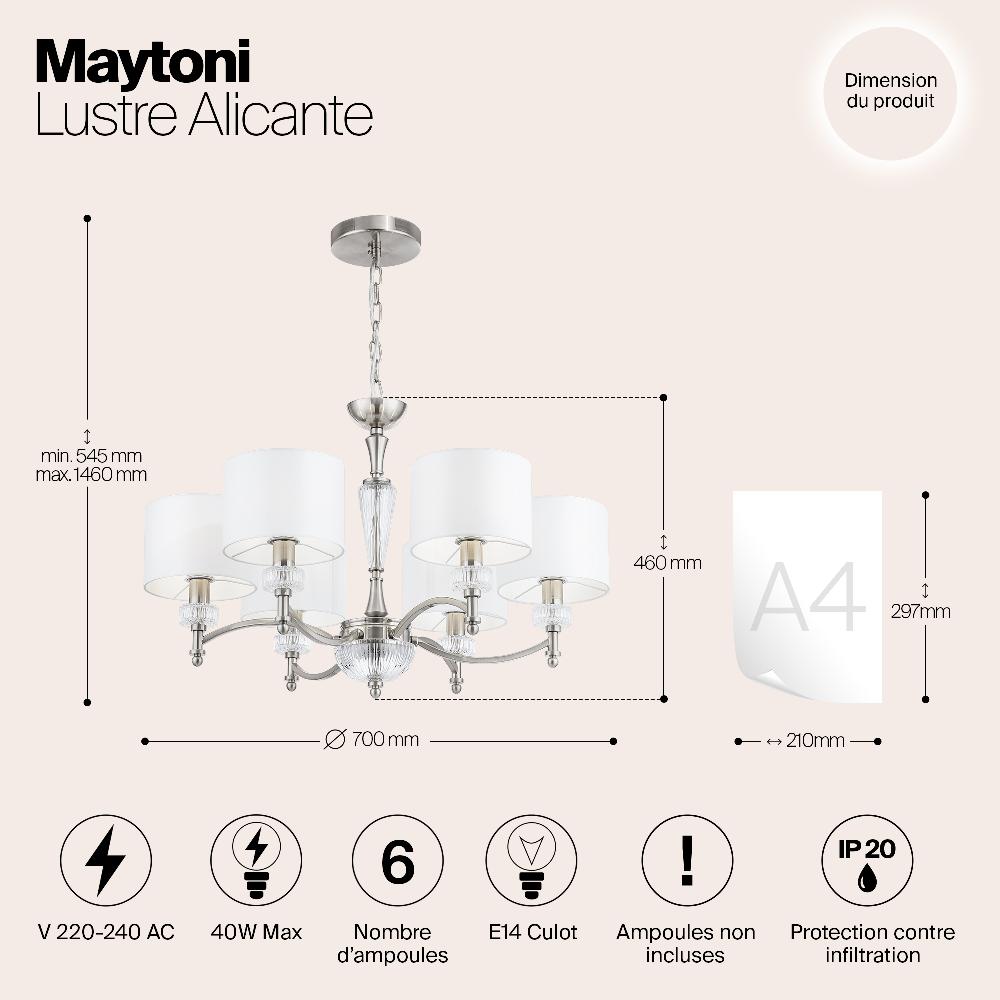 Люстра Maytoni MOD014CL-06N от бренда из коллекции Neoclassic будет удачно смотреться в . Светильник выполнен из с плафонами в форме цилиндра белого цвета.