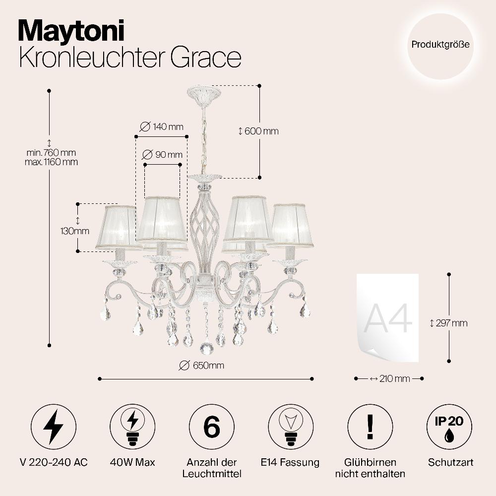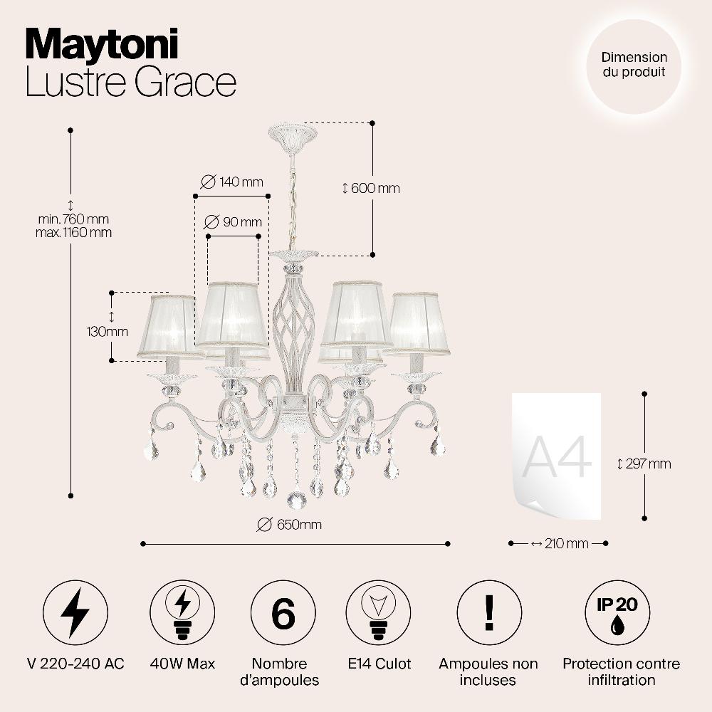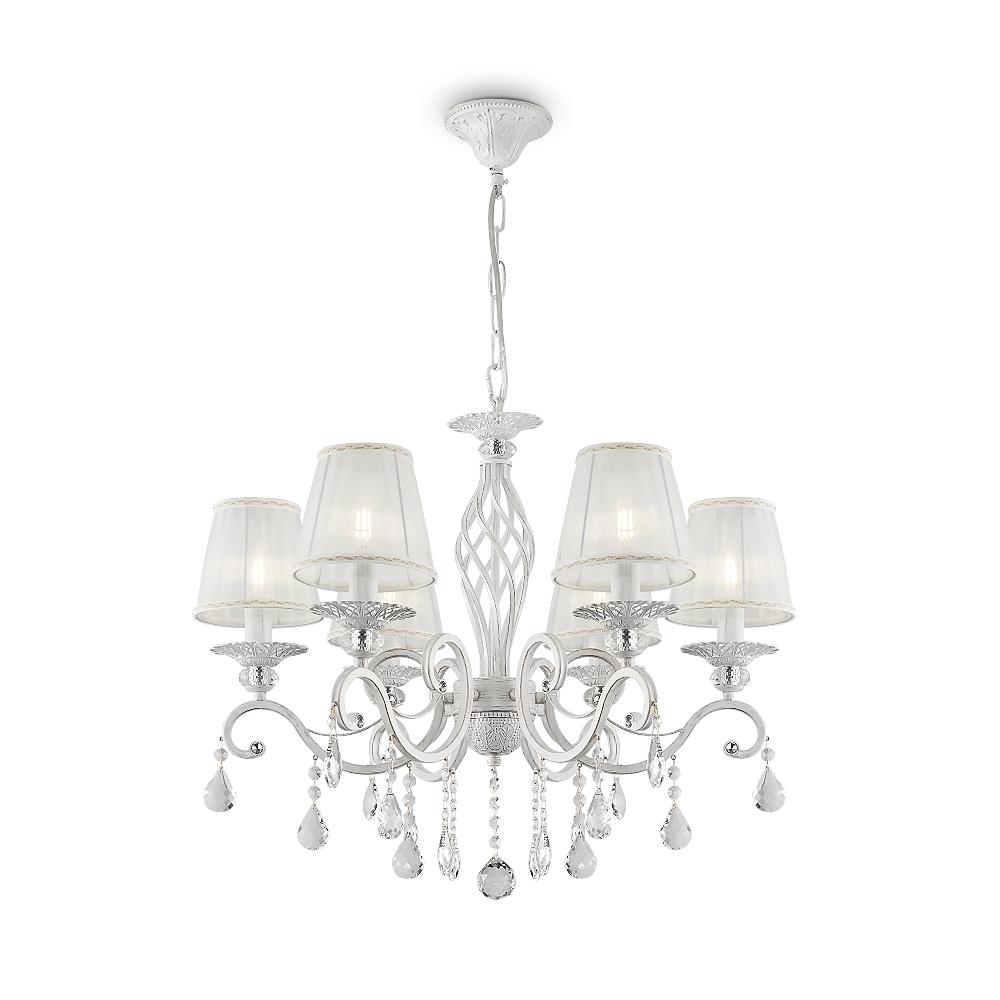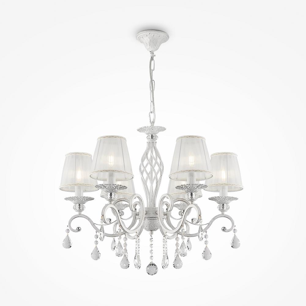 Люстра Maytoni ARM247-06-G от бренда из коллекции Elegant будет удачно смотреться в . Светильник выполнен из органзы с плафонами в форме белого цвета.