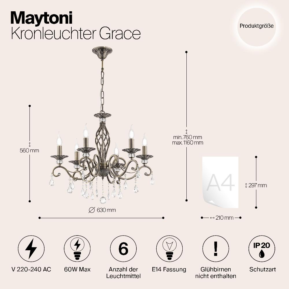 Люстра Maytoni RC247-PL-06-R от бренда из коллекции Royal Classic будет удачно смотреться в . Светильник выполнен из с плафонами в форме .