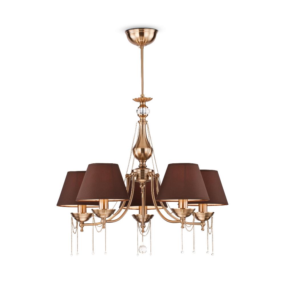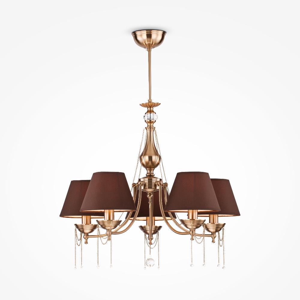 Люстра Maytoni RC0100-PL-05-R от бренда из коллекции Royal Classic будет удачно смотреться в . Светильник выполнен из с плафонами в форме коричневого цвета.