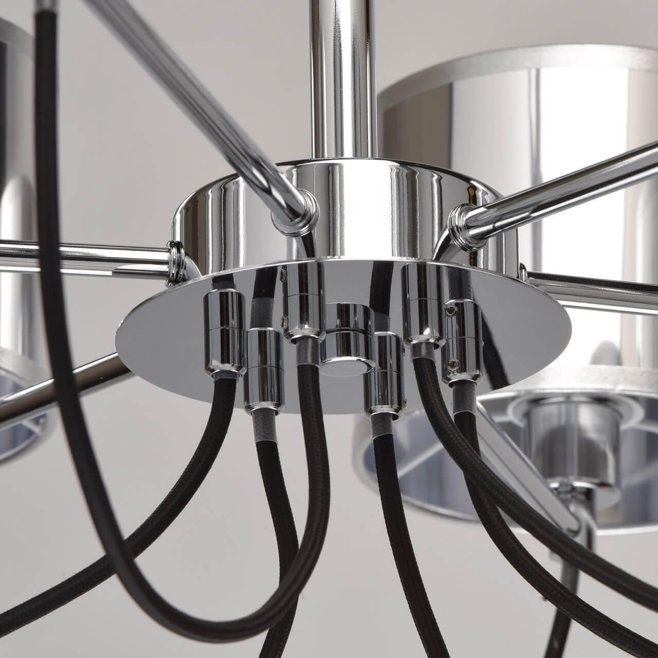 Производитель светильника рекомендует для устройства 6 ламп накаливания с цоколем E14 и мощностью 40 W, что позволит осветить помещение площадью 13,3 кв.м. Габариты изделия: высота – 500 мм, диаметр – 680 мм.