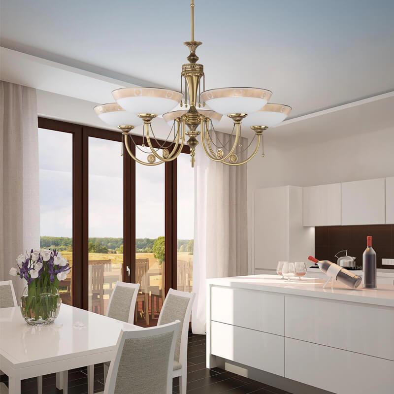 Подвесная люстра Kutek Dorato DOR-ZW-5 (P) от Польского бренда Kutek из коллекции Dorato будет удачно смотреться в гостиной в классиком стиле. Светильник выполнен из стекла с плафонами в форме полукруга белого цвета.