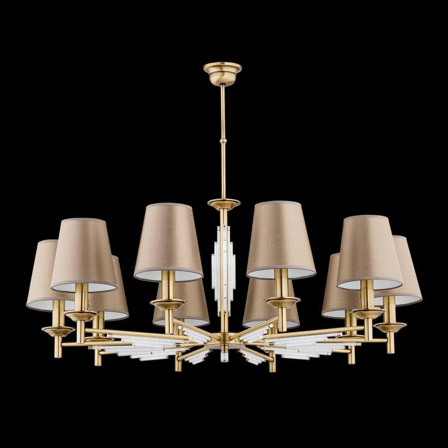 Производитель светильника рекомендует для устройства 10 ламп накаливания с цоколем E14 и мощностью 40 W, что позволит осветить помещение площадью кв.м. Габариты изделия: высота – 700 мм, диаметр – 940 мм.
