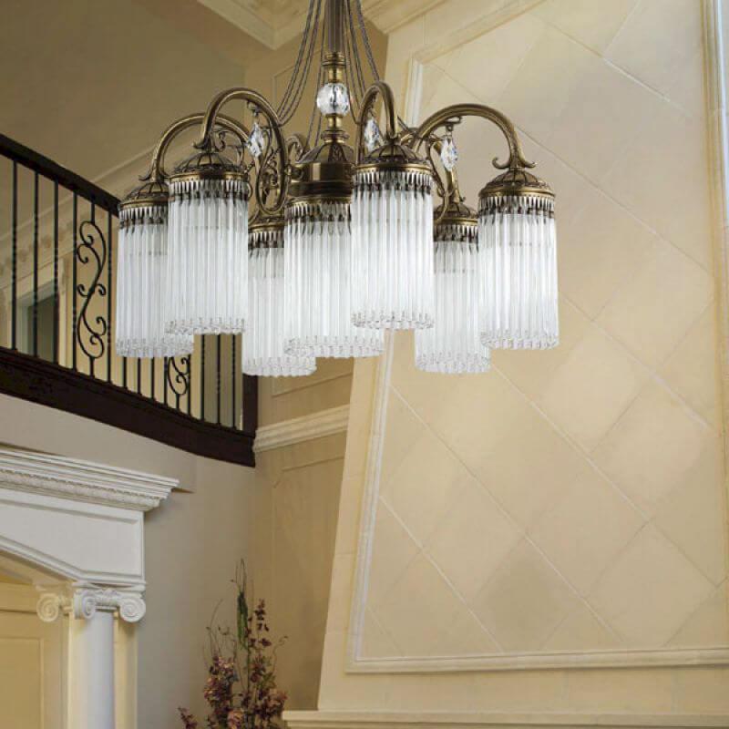 Производитель светильника рекомендует для устройства 7 ламп накаливания с цоколем E27 и мощностью 40 W, что позволит осветить помещение площадью кв.м. Габариты изделия: высота – 850 мм, диаметр – 600 мм.