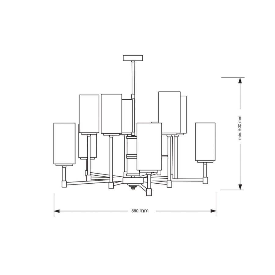 Производитель светильника рекомендует для устройства 10 ламп накаливания с цоколем E14 и мощностью 60 W, что позволит осветить помещение площадью кв.м. Габариты изделия: высота – 600 мм, диаметр – 880 мм.