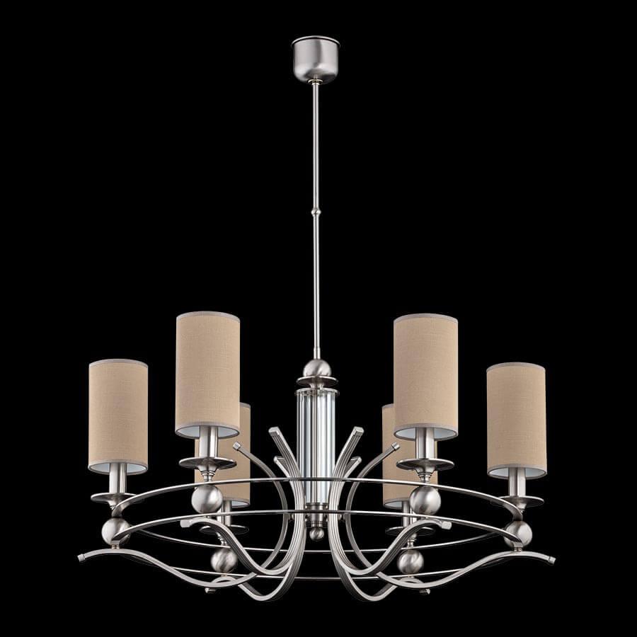 Производитель светильника рекомендует для устройства 6 ламп накаливания с цоколем E14 и мощностью 40 W, что позволит осветить помещение площадью кв.м. Габариты изделия: высота – 700 мм, диаметр – 810 мм.