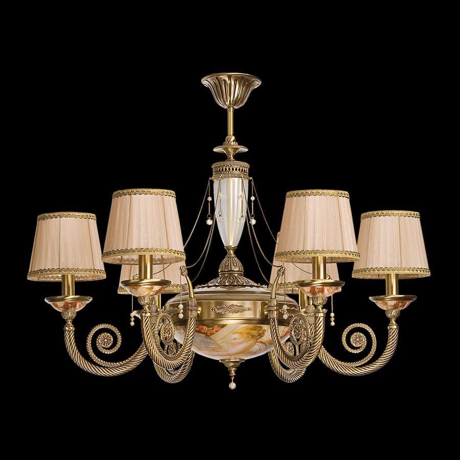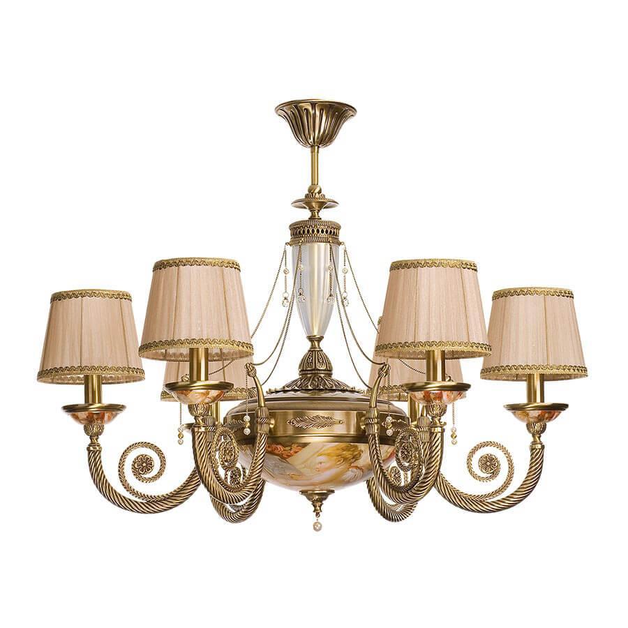 Подвесная люстра Kutek Bibione Abazur BIB-ZW-6(P/A)A от Польского бренда Kutek из коллекции Bibione Abazur будет удачно смотреться в гостиной в классиком стиле. Светильник выполнен из с плафонами в форме .