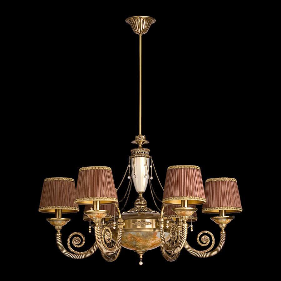 Подвесная люстра Kutek Bibione Abazur BIB-ZW-6(P/A)SR от Польского бренда Kutek из коллекции Bibione Abazur будет удачно смотреться в гостиной в классиком стиле. Светильник выполнен из с плафонами в форме .