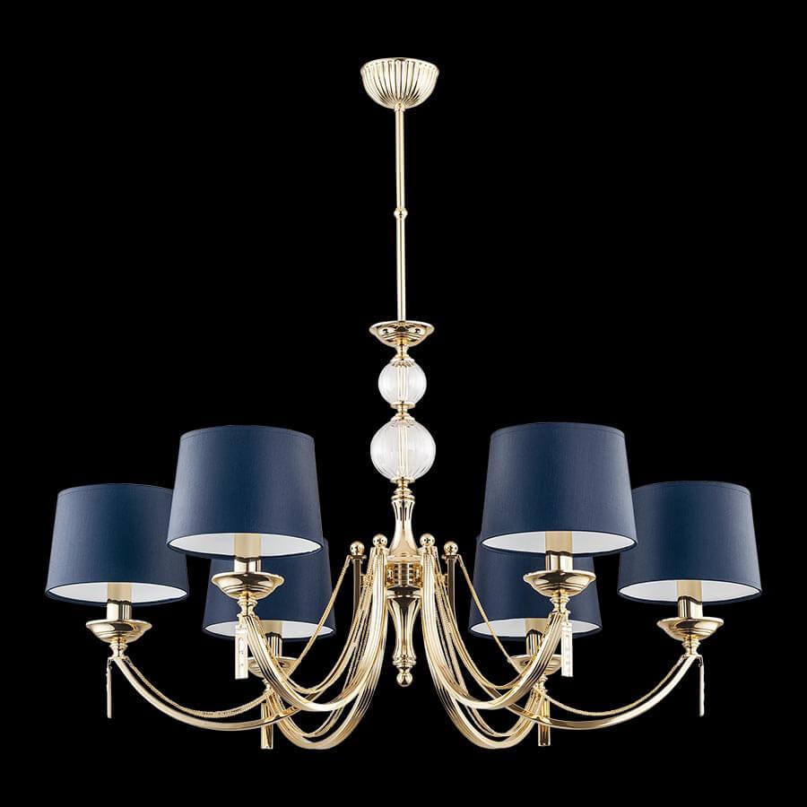 Подвесная люстра Kutek Zaffiro ZAF-ZW-6(P/A) от Польского бренда Kutek из коллекции Zaffiro будет удачно смотреться в гостиной в стиле модерн. Светильник выполнен из ткани с плафонами в форме конуса синего цвета.