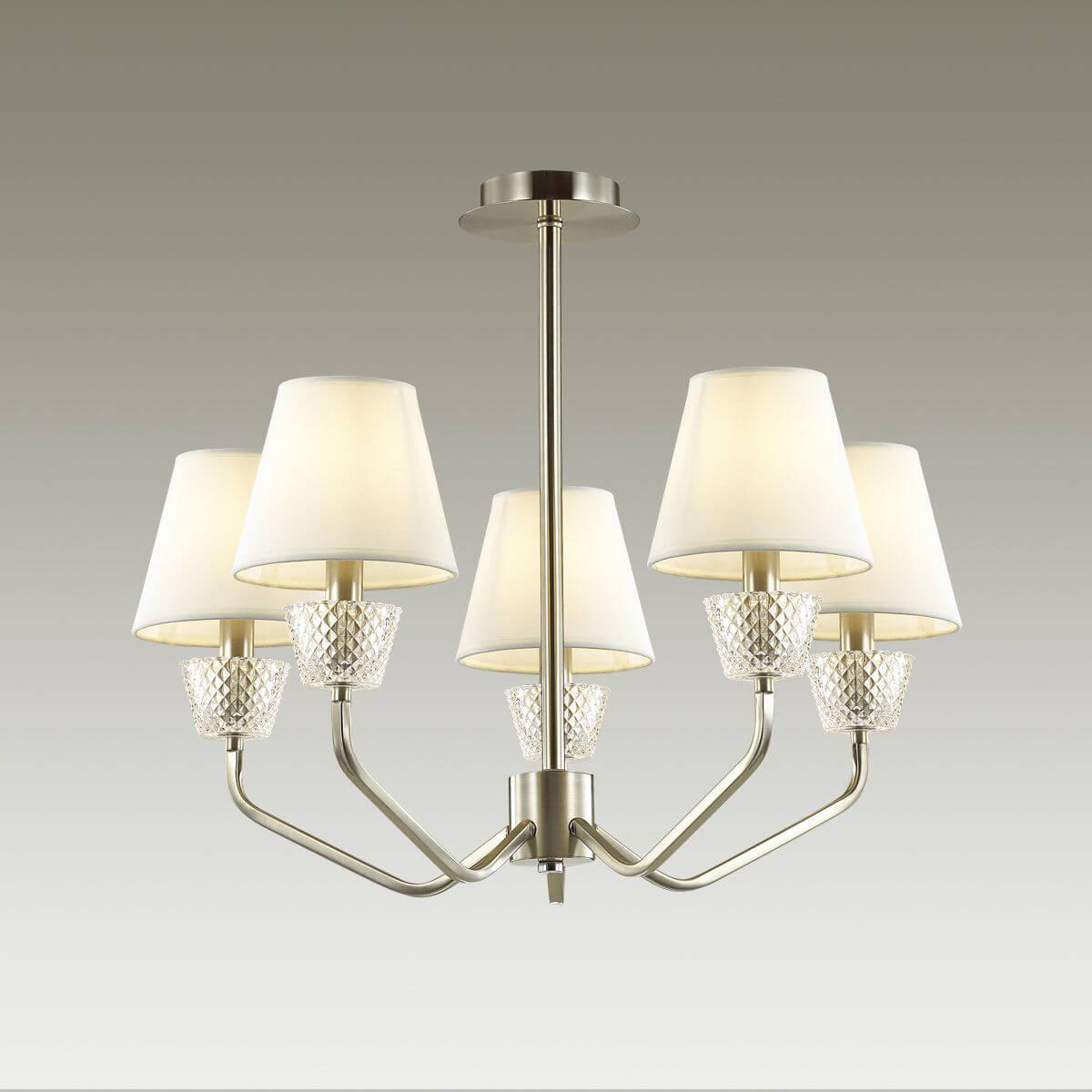 Производитель светильника рекомендует для устройства 5 ламп накаливания с цоколем E14 и мощностью 40 W, что позволит осветить помещение площадью кв.м. Габариты изделия: высота – 510 мм, диаметр – 630 мм.