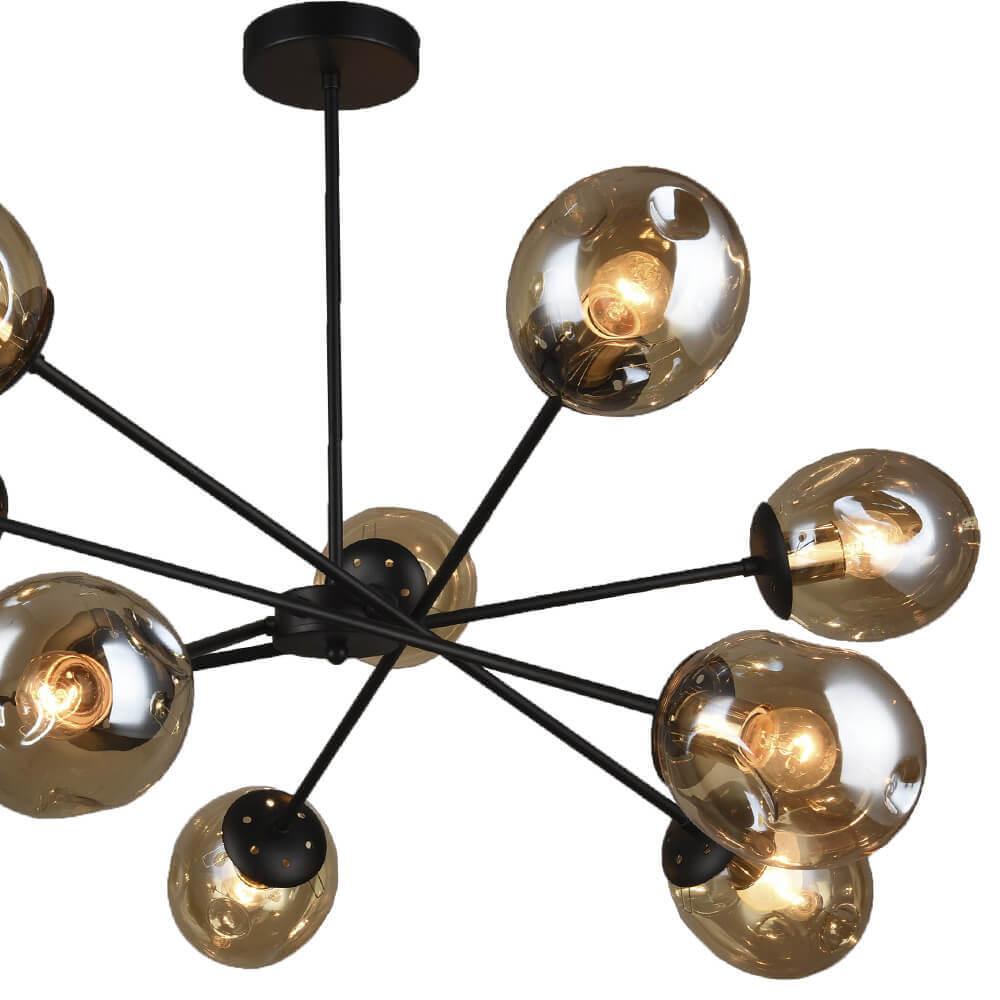 Производитель светильника рекомендует для устройства 10 ламп накаливания с цоколем E27 и мощностью 60 W, что позволит осветить помещение площадью 30 кв.м. Габариты изделия: высота – 560 мм, диаметр – 880 мм.