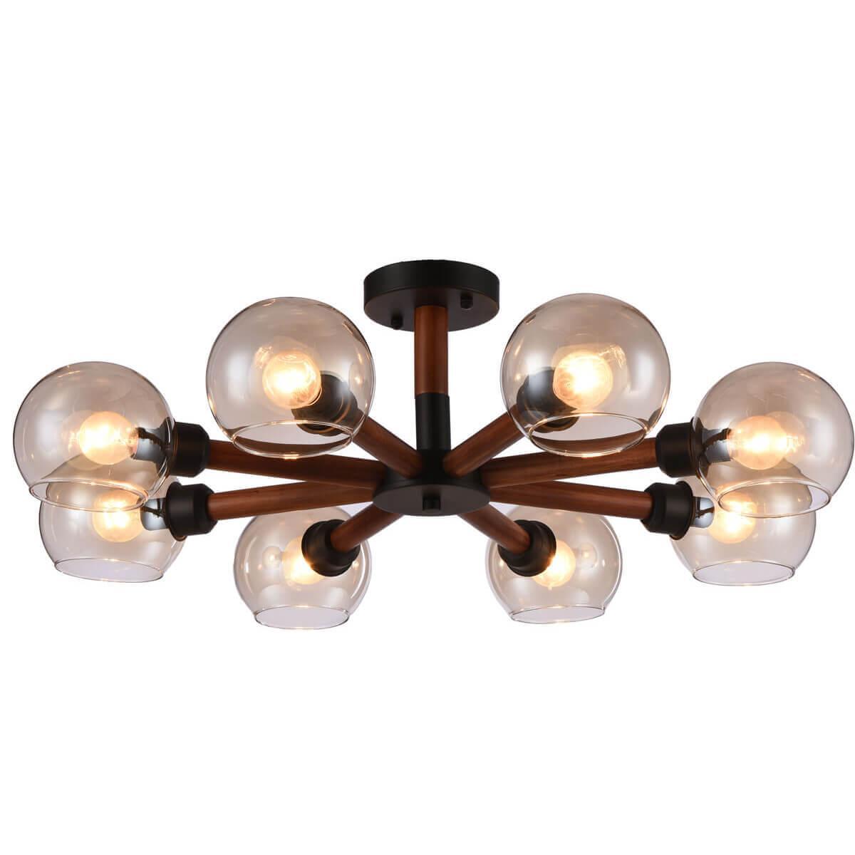 Производитель светильника рекомендует для устройства 8 ламп накаливания с цоколем E14 и мощностью 40 W, что позволит осветить помещение площадью 22 кв.м. Габариты изделия: высота – 230 мм, диаметр – 730 мм.