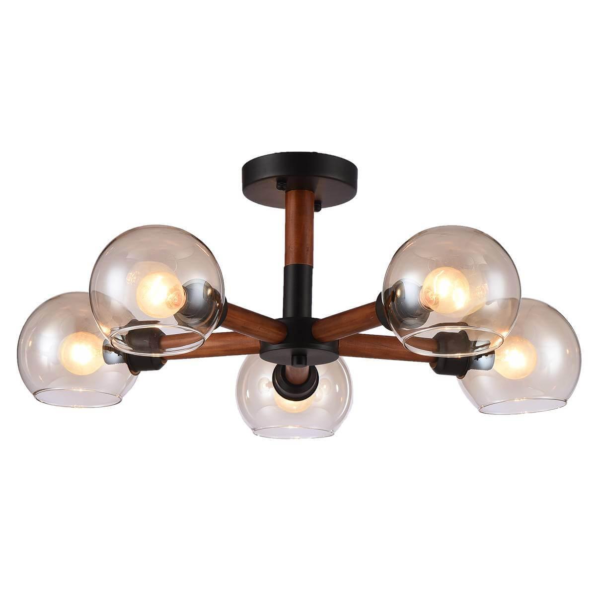 Производитель светильника рекомендует для устройства 5 ламп накаливания с цоколем E14 и мощностью 40 W, что позволит осветить помещение площадью 14 кв.м. Габариты изделия: высота – 230 мм, диаметр – 630 мм.