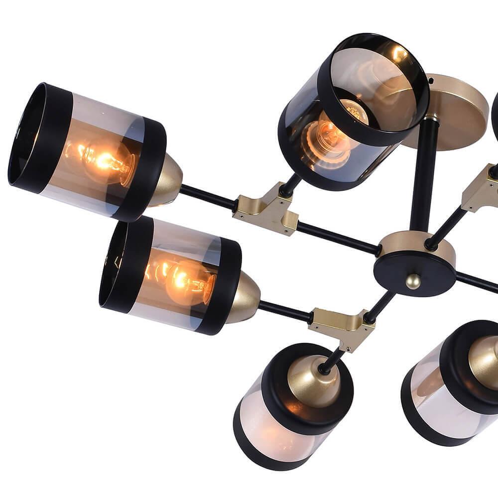 Потолочная люстра Seven Fires Паула SF3304/8C-CGD+MBK от Российского бренда Seven Fires из коллекции Паула будет удачно смотреться в гостиной в стиле Арт-деко. Светильник выполнен из стекла с плафонами в форме цилиндра цвета шампунт.