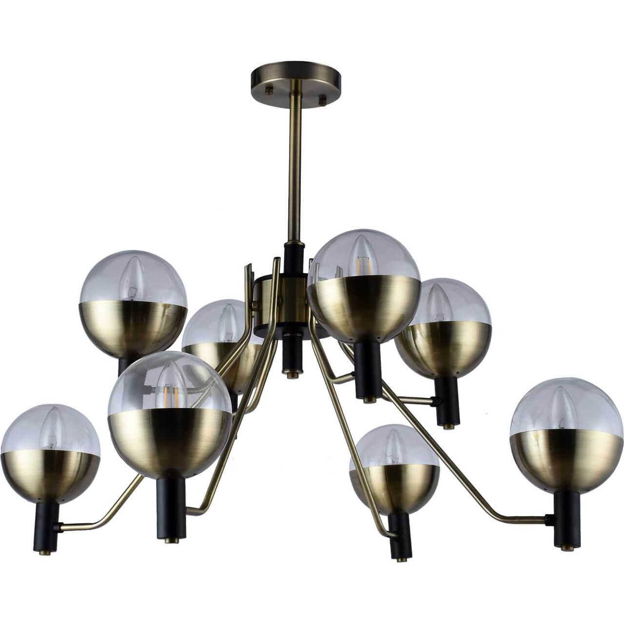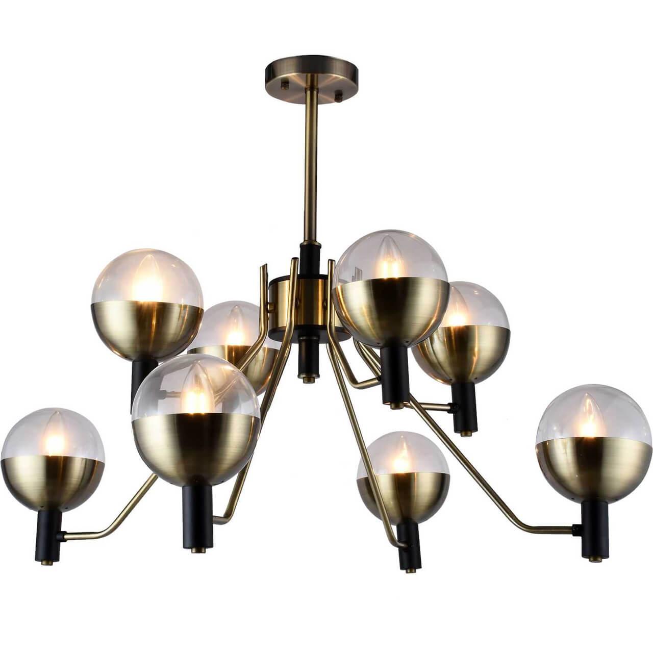 Производитель светильника рекомендует для устройства 8 ламп накаливания с цоколем E14 и мощностью 40 W, что позволит осветить помещение площадью кв.м. Габариты изделия: высота – 620 мм, диаметр – 660 мм.