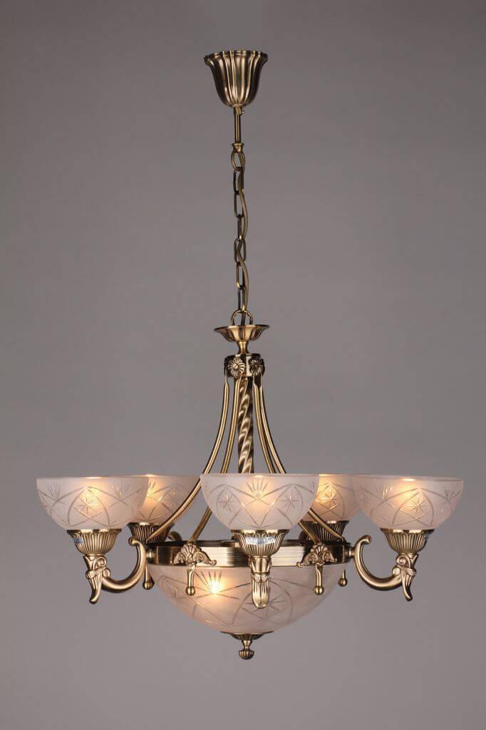 Производитель светильника рекомендует для устройства 8 ламп накаливания с цоколем E27 и мощностью 60 W, что позволит осветить помещение площадью 26,7 кв.м. Габариты изделия: высота – 900 мм, диаметр – 600 мм.