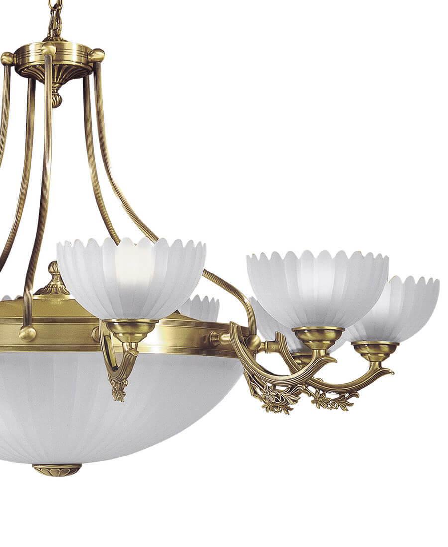 Подвесная люстра Reccagni Angelo L 3030/10+4 от Итальянского бренда Reccagni Angelo из коллекции Bronze 3030 будет удачно смотреться в гостиной в классиком стиле. Светильник выполнен из стекла с плафонами в форме Флористика белого цвета.