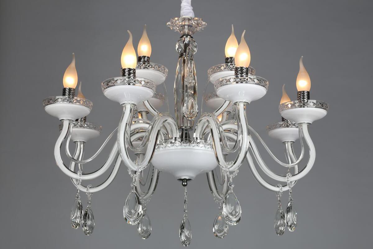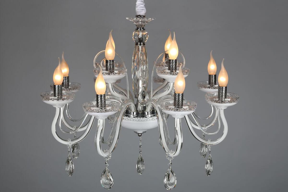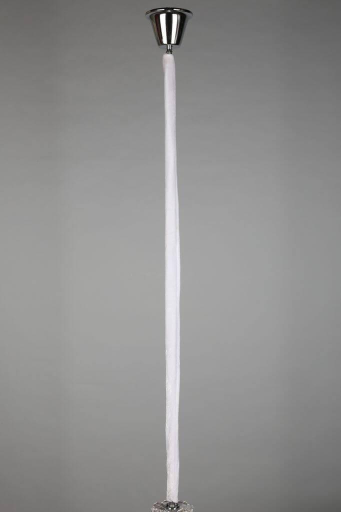 Производитель светильника рекомендует для устройства 12 ламп накаливания с цоколем E14 и мощностью 60 W, что позволит осветить помещение площадью 40,0 кв.м. Габариты изделия: высота – 1800 мм, диаметр – 800 мм.