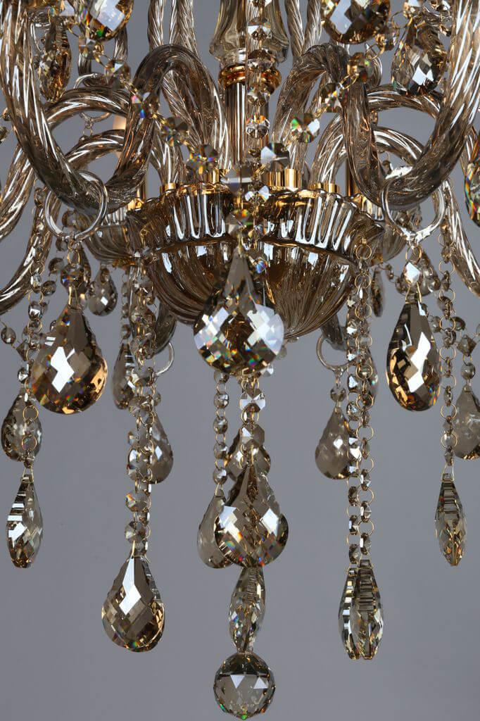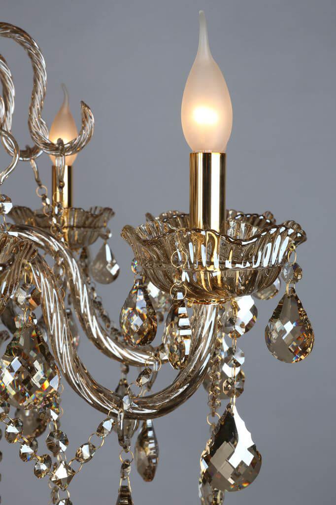 Производитель светильника рекомендует для устройства 8 ламп накаливания с цоколем E14 и мощностью 40 W, что позволит осветить помещение площадью 17,8 кв.м. Габариты изделия: высота – 1900 мм, диаметр – 750 мм.