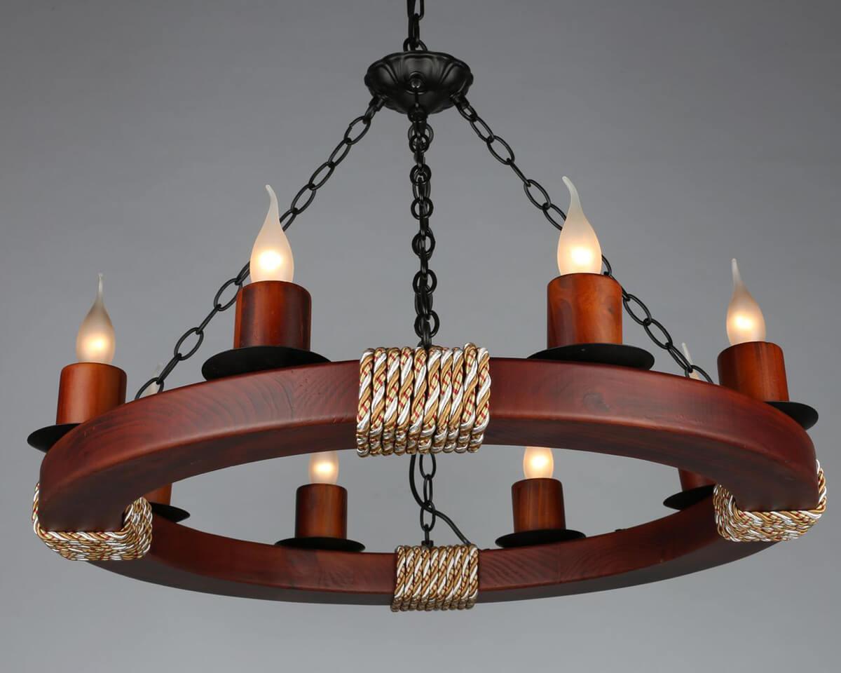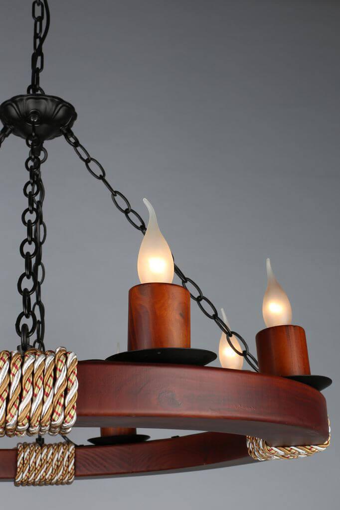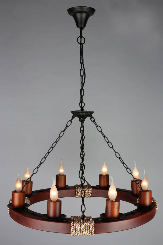 Подвесная люстра Omnilux OML-59303-08 от Китайского бренда Omnilux из коллекции OML-593 будет удачно смотреться в гостиной в стиле кантри. Светильник выполнен из с плафонами в форме .