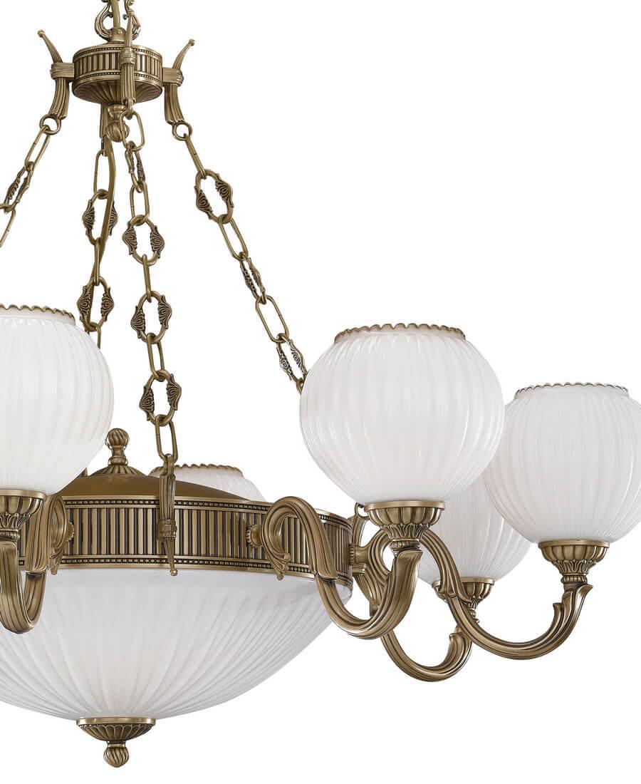 Подвесная люстра Reccagni Angelo L 9250/8+3 от Итальянского бренда Reccagni Angelo из коллекции 9250 будет удачно смотреться в больших залах в классиком стиле. Светильник выполнен из стекла с плафонами в форме круга белого цвета.