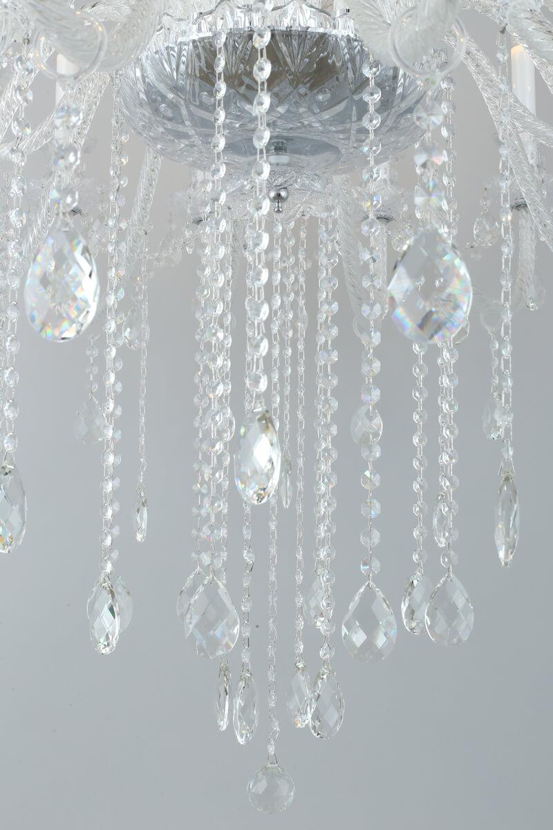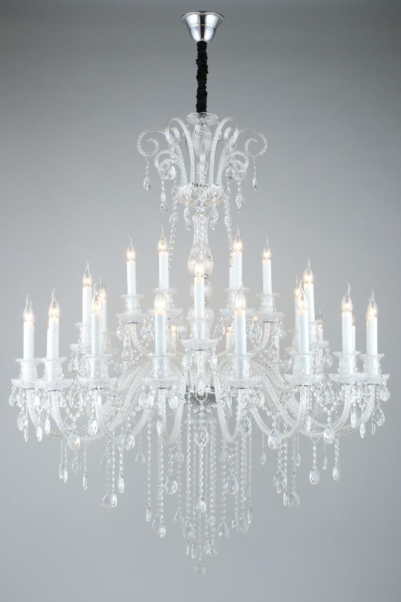 Производитель светильника рекомендует для устройства 30 ламп накаливания с цоколем E14 и мощностью 60 W, что позволит осветить помещение площадью 90 кв.м. Габариты изделия: высота – 1700 мм, диаметр – 1350 мм.