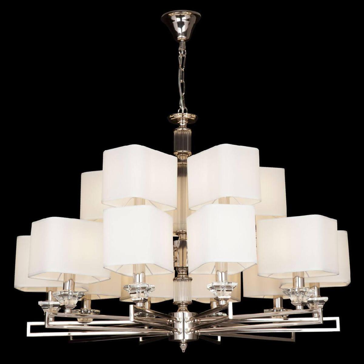 Подвесная люстра Maytoni Ontario MOD020PL-15CH от Немецкого бренда Maytoni из коллекции Ontario будет удачно смотреться в больших залах в стиле модерн. Светильник выполнен из ткани с плафонами в форме квадрата белого цвета.